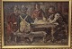 Akrylmaleri på træ med titlen "Figurer omkring et bord"