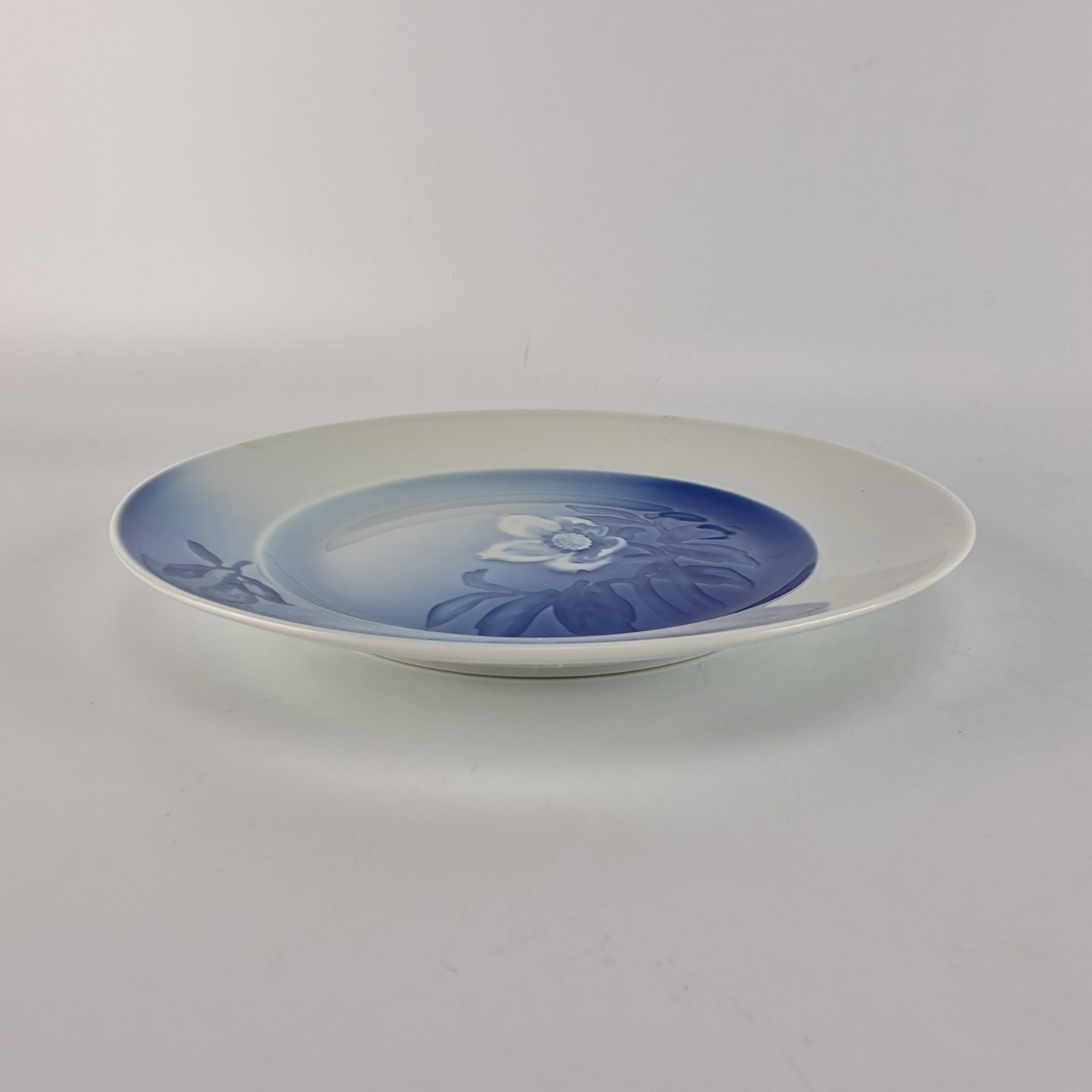 Julerose er hvidt porcelæn med gradueret blå farver, dekoreret med et motiv af en hvid julerose
