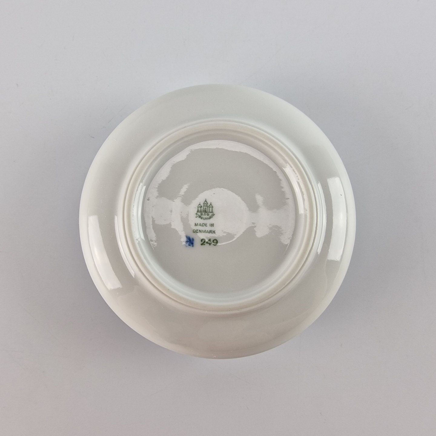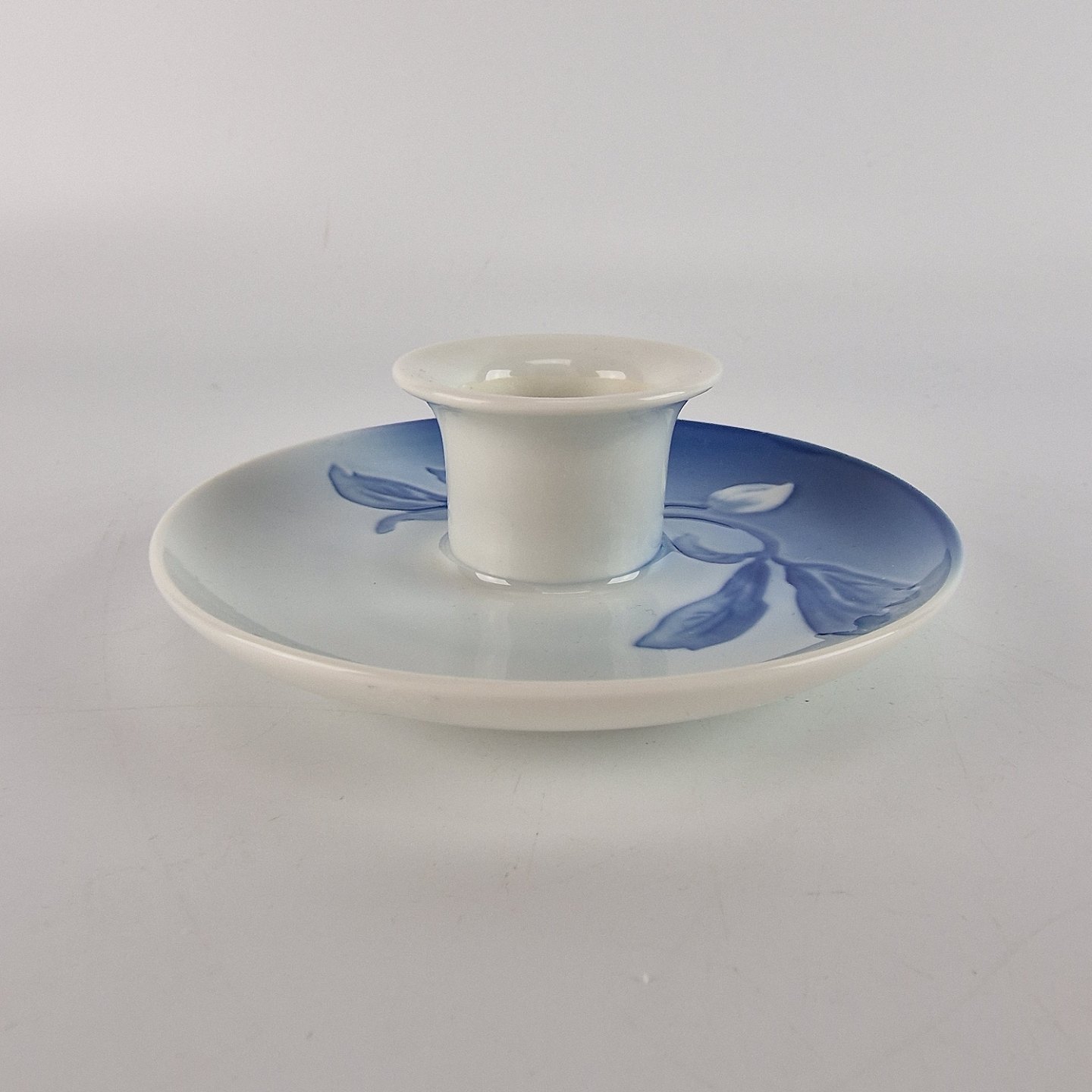 Julerose er hvidt porcelæn med gradueret blå farver, dekoreret med et motiv af en hvid julerose