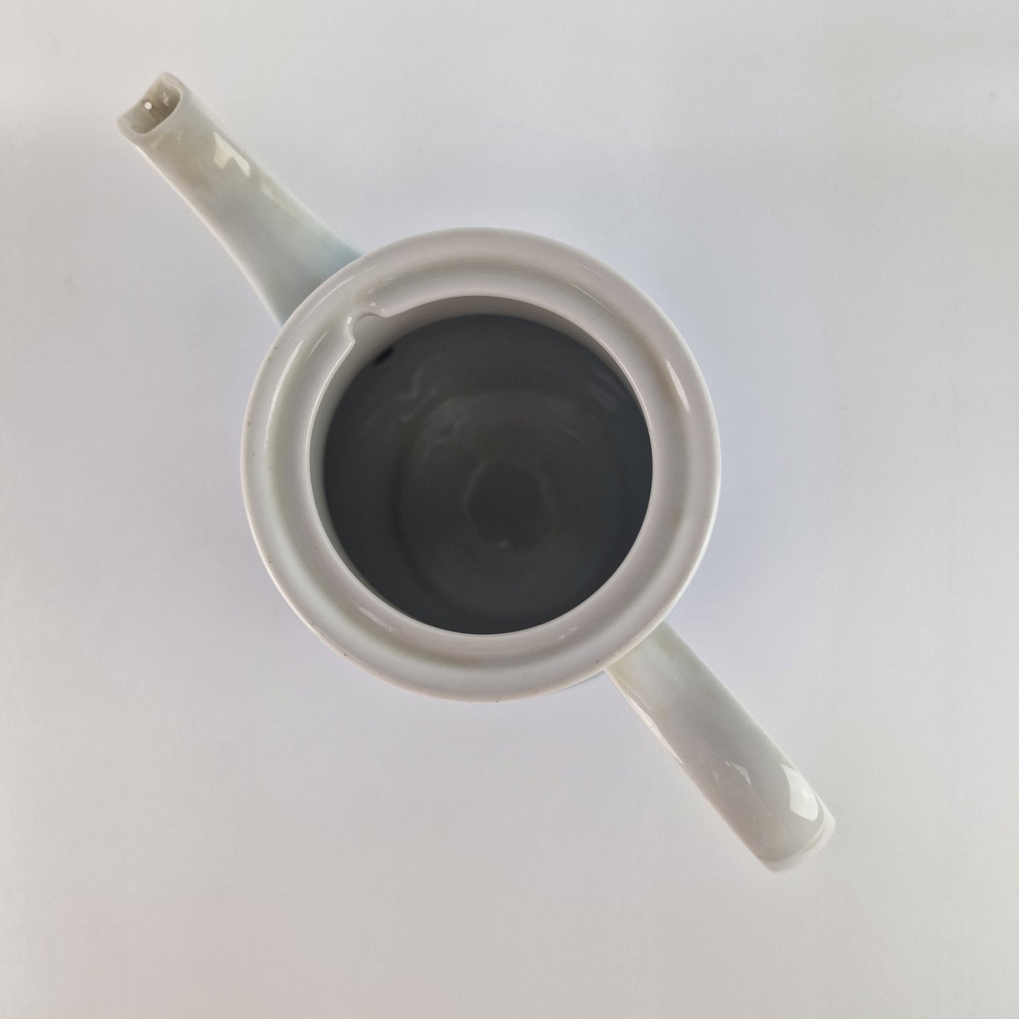 Julerose er hvidt porcelæn med gradueret blå farver, dekoreret med et motiv af en hvid julerose