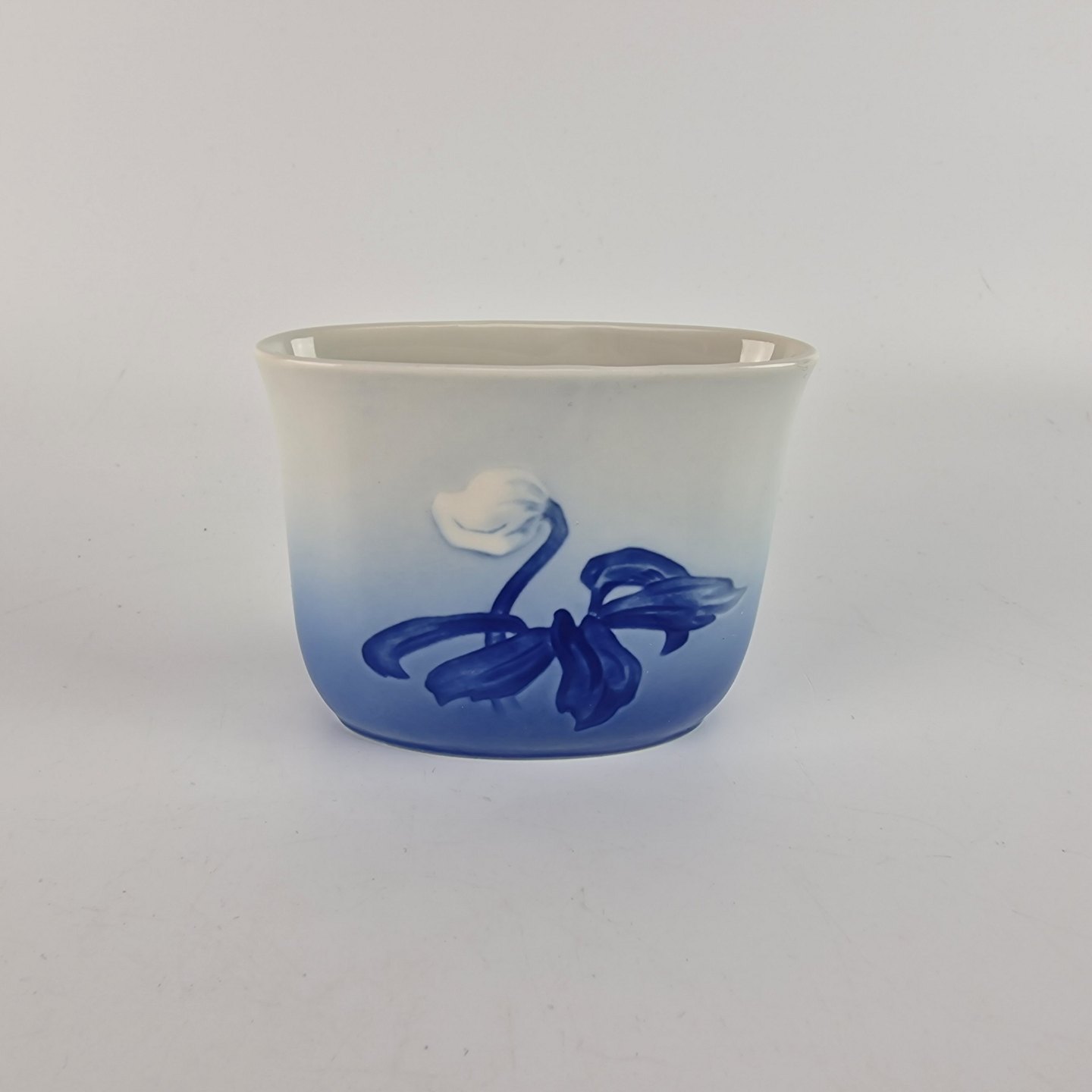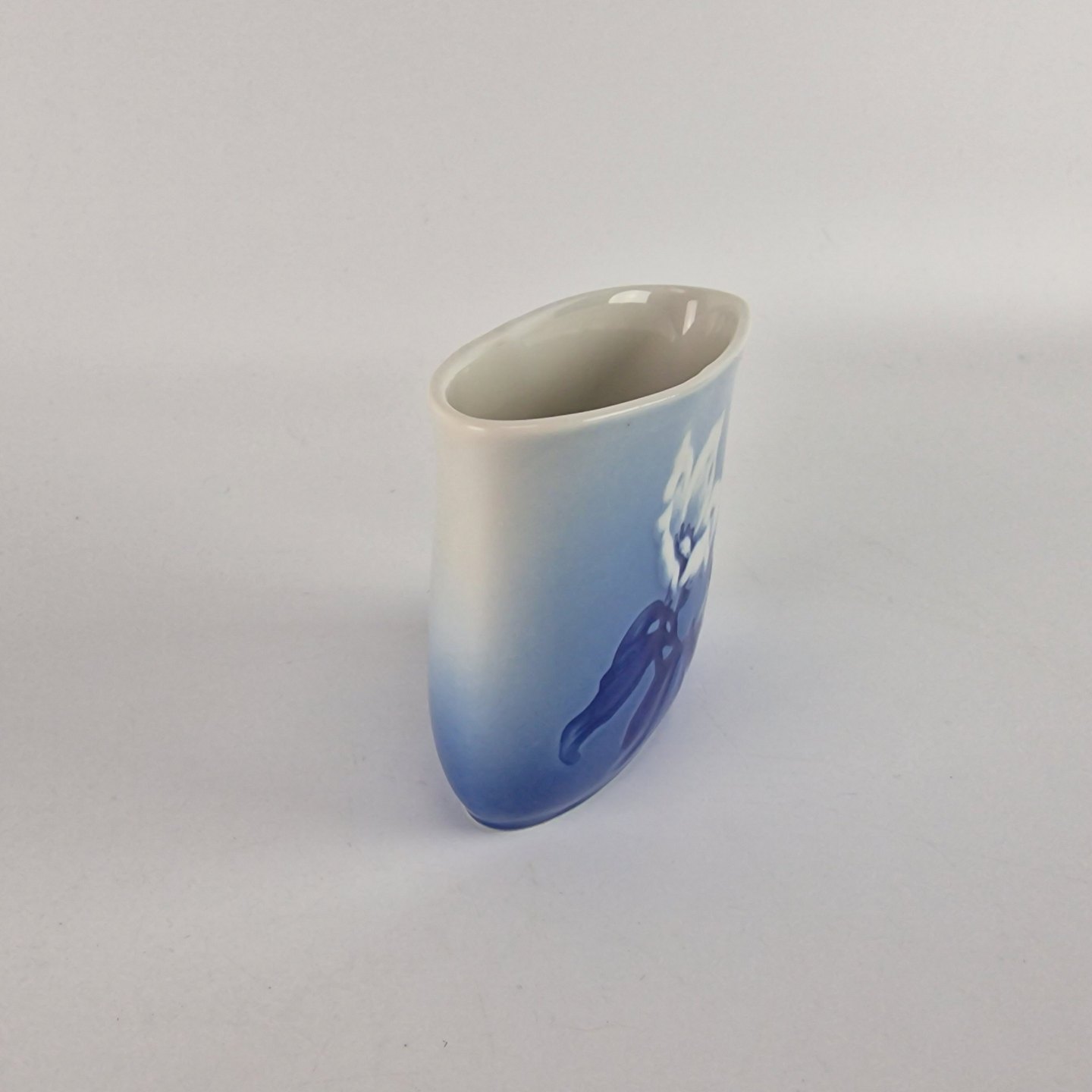 Julerose er hvidt porcelæn med gradueret blå farver, dekoreret med et motiv af en hvid julerose