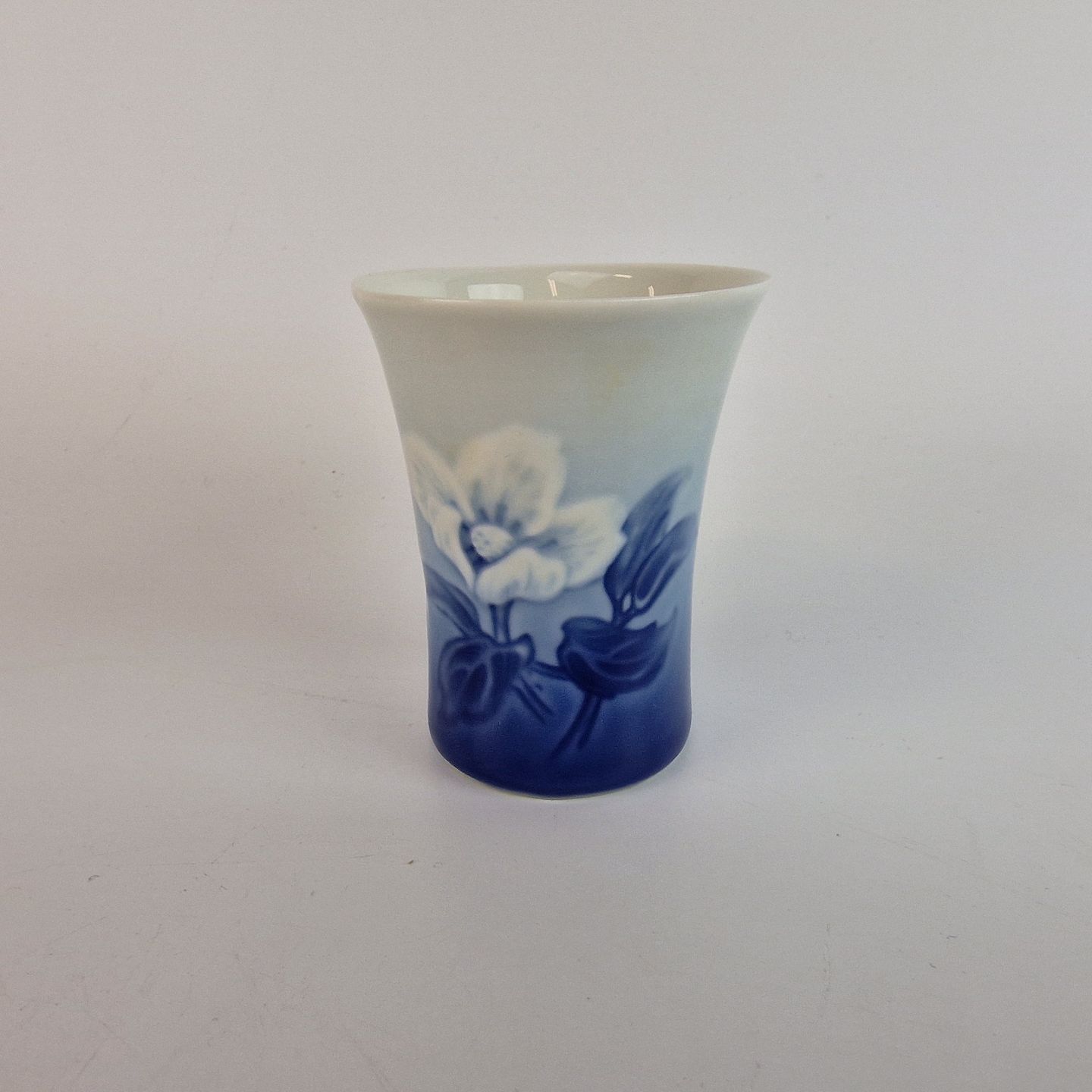 Julerose er hvidt porcelæn med gradueret blå farver, dekoreret med et motiv af en hvid julerose