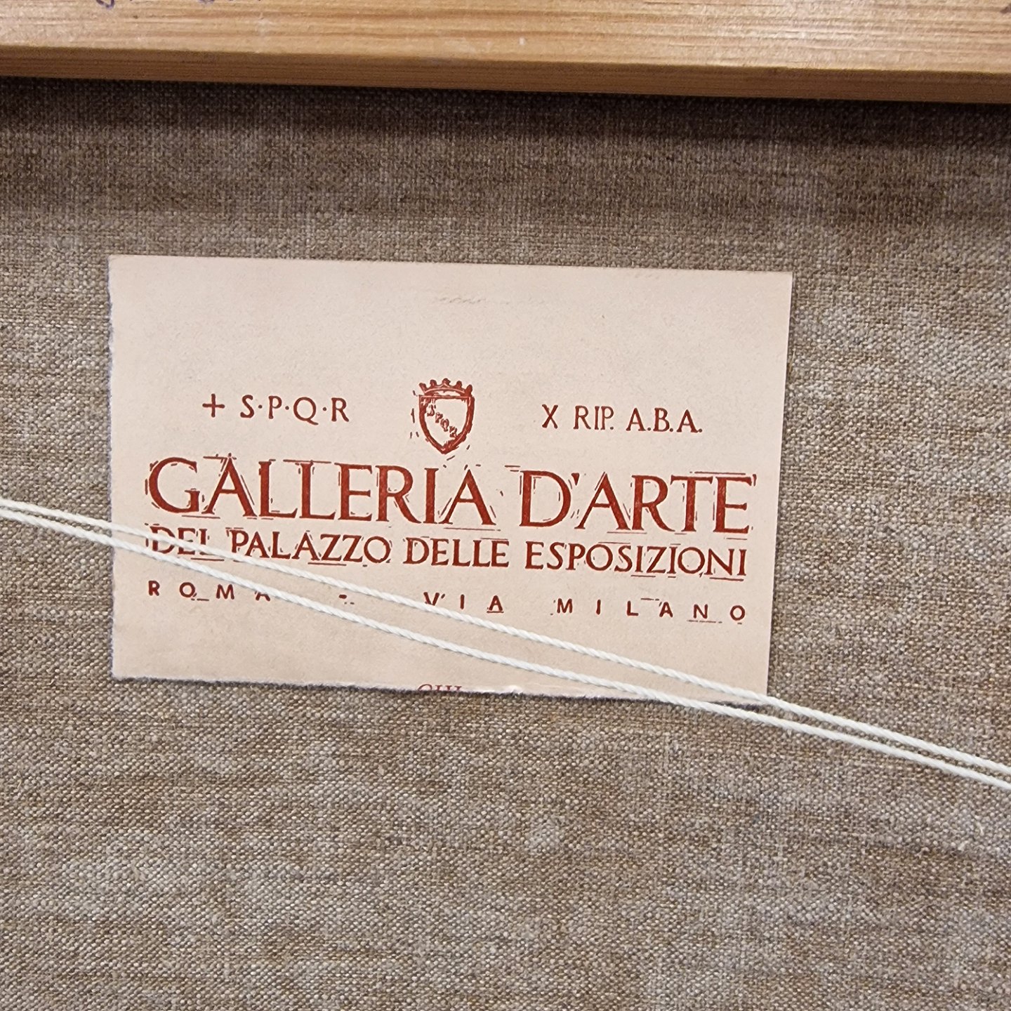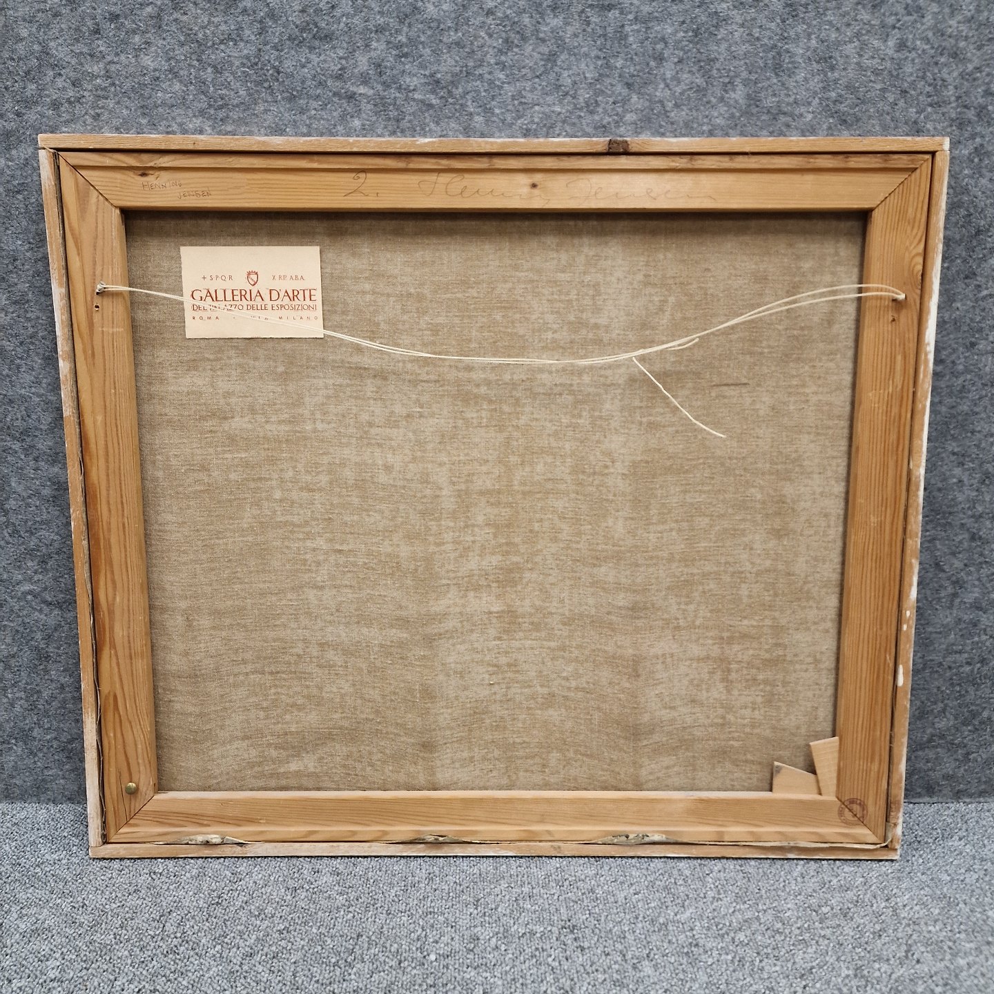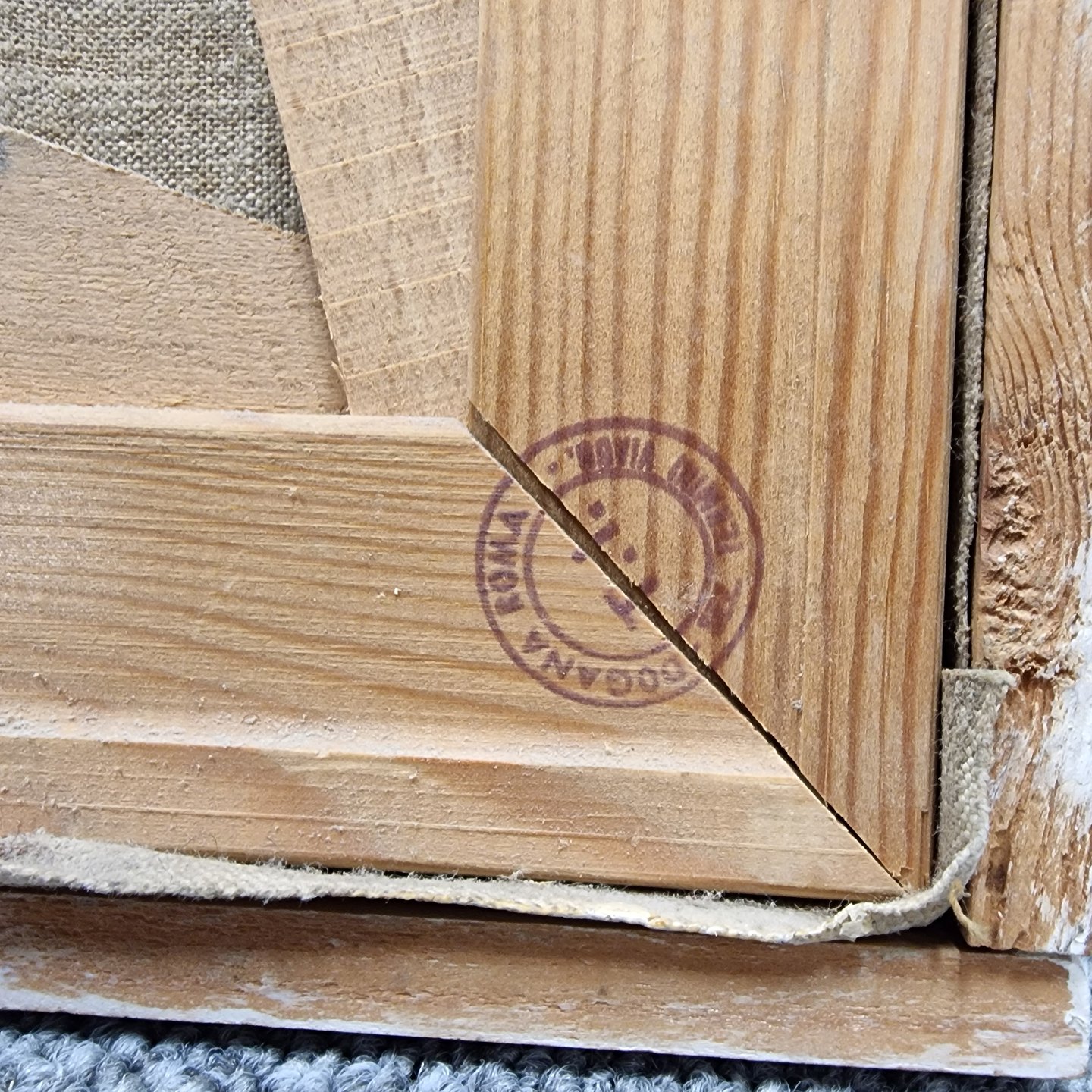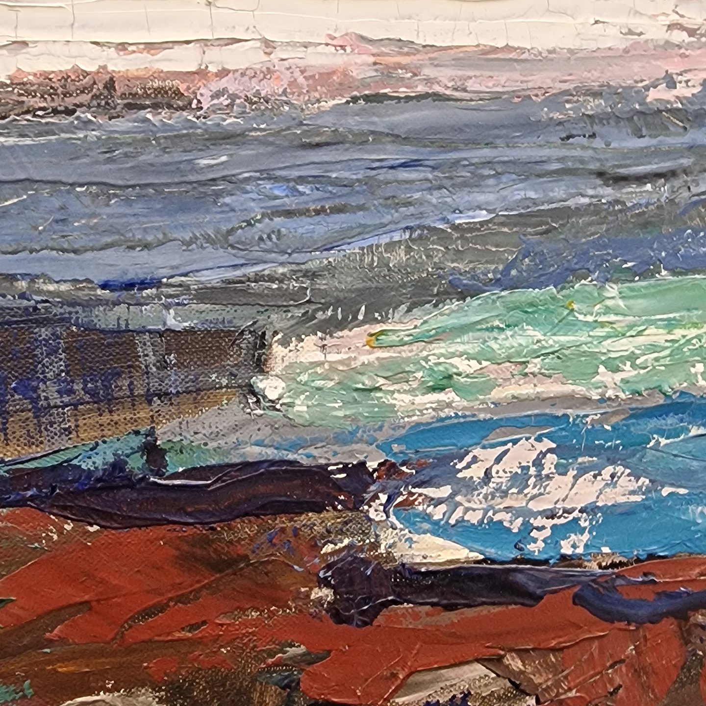 Oliemaling på lærred med abstrakt landskabsmotiv ved strand