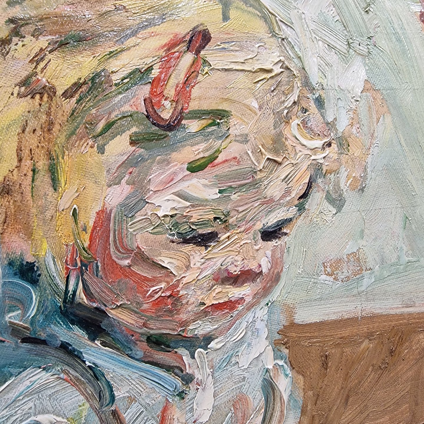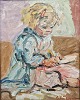Maleri af oliemaling på lærred, med motiv af en pige som sidder og skriver