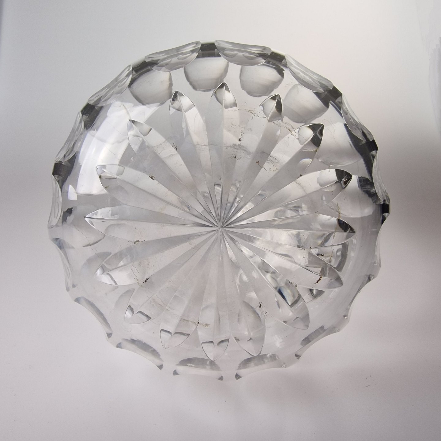 Klar karaffel til glasservicet Derby, dekoreret med stjerneslibning nederst. Med hank og prop. Olivenslibning rundt på kolben.