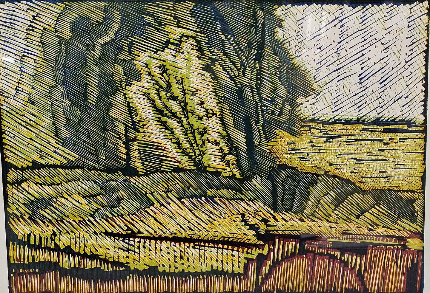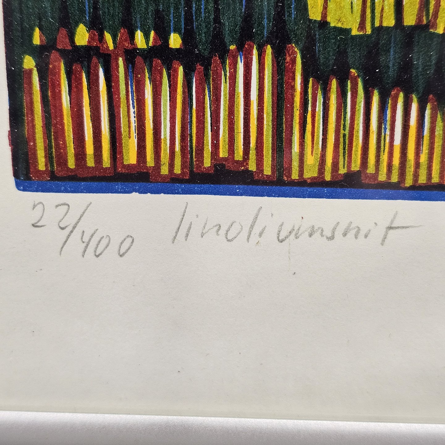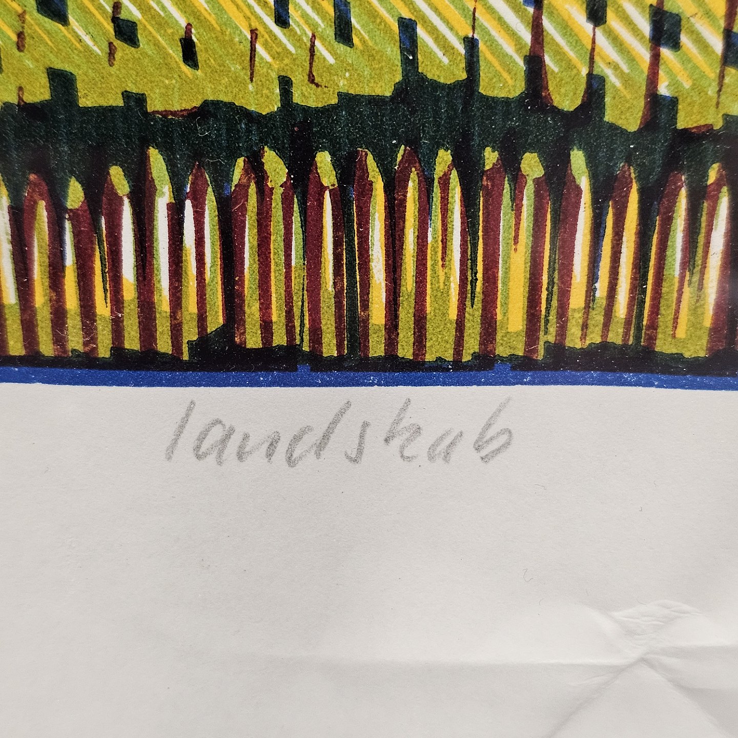 Linoleumssnit 22/400. Dateret 1984. Titel Landskab