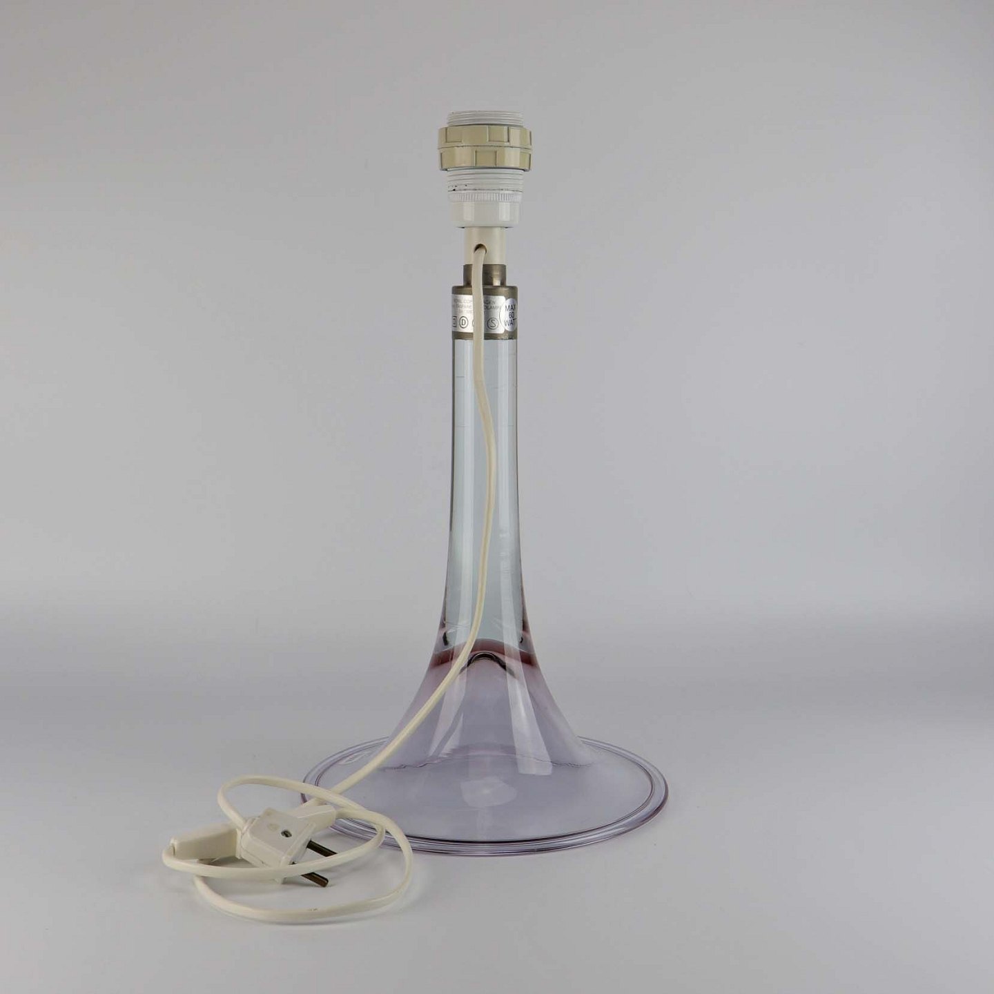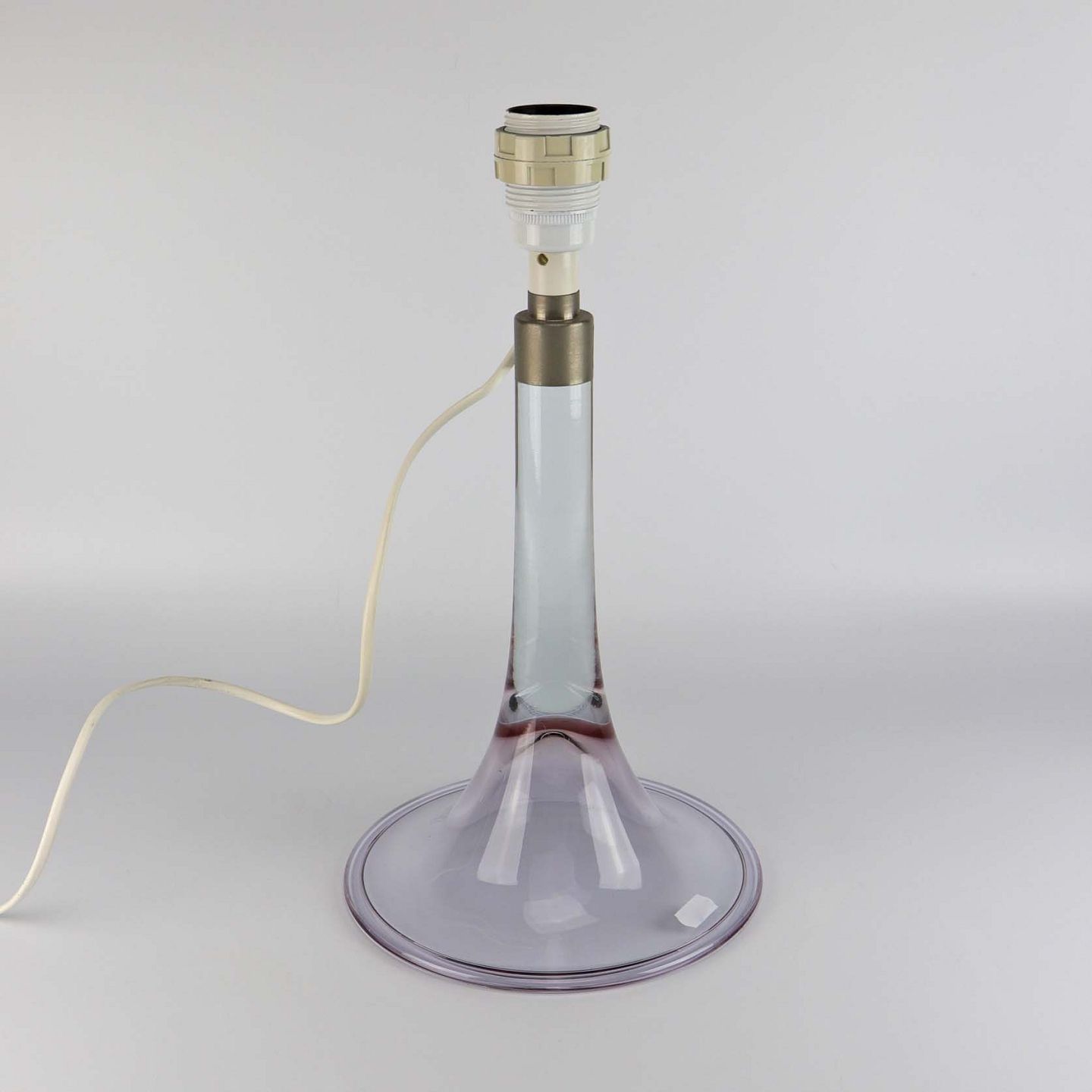 Lyslilla bordlampe i mundblæst glas, størrelse mellem