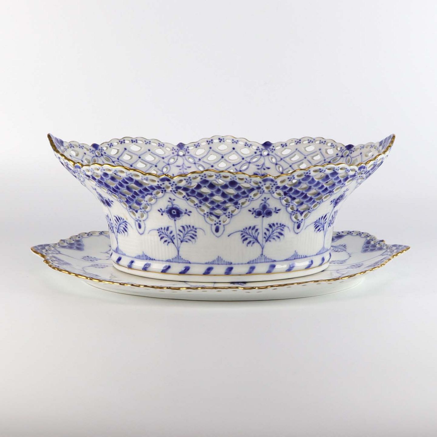 Frugtskål med fad i porcelæn med guldkant fra stellet Musselmalet helblonde nr 1/1059 og 1/1060