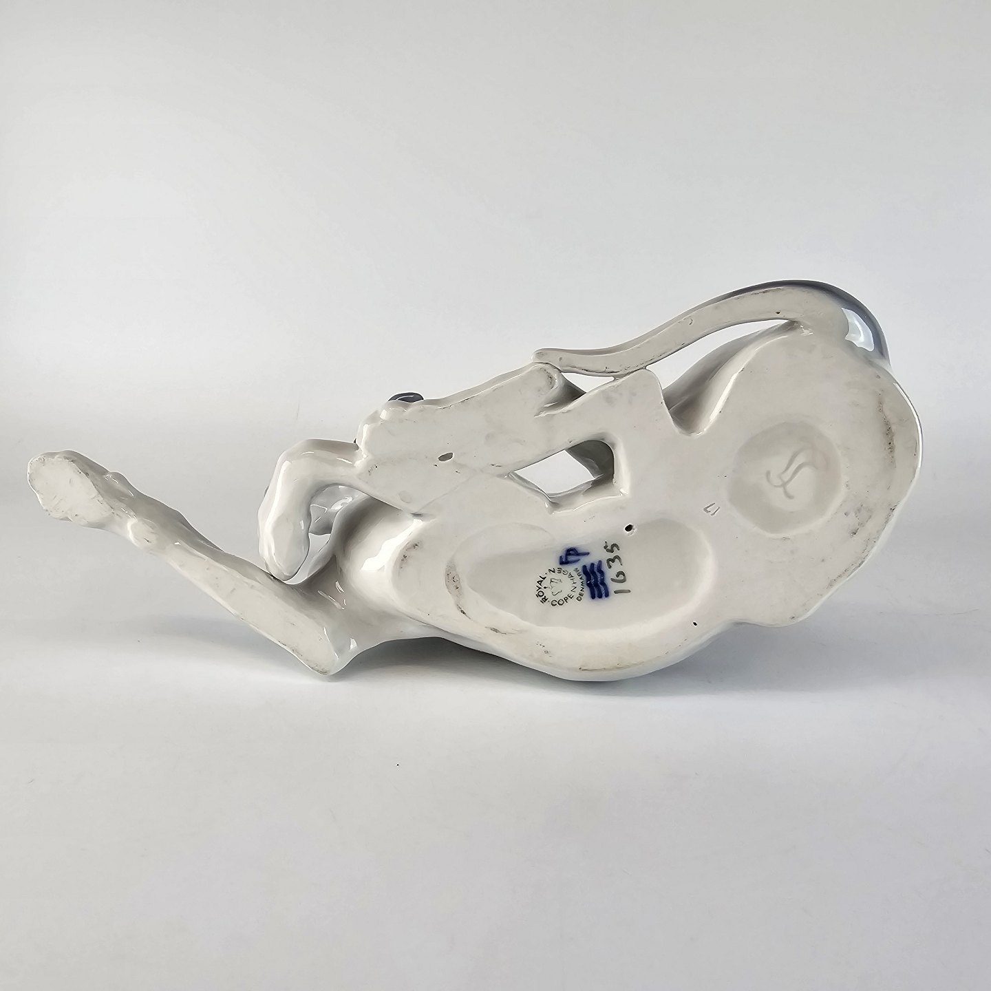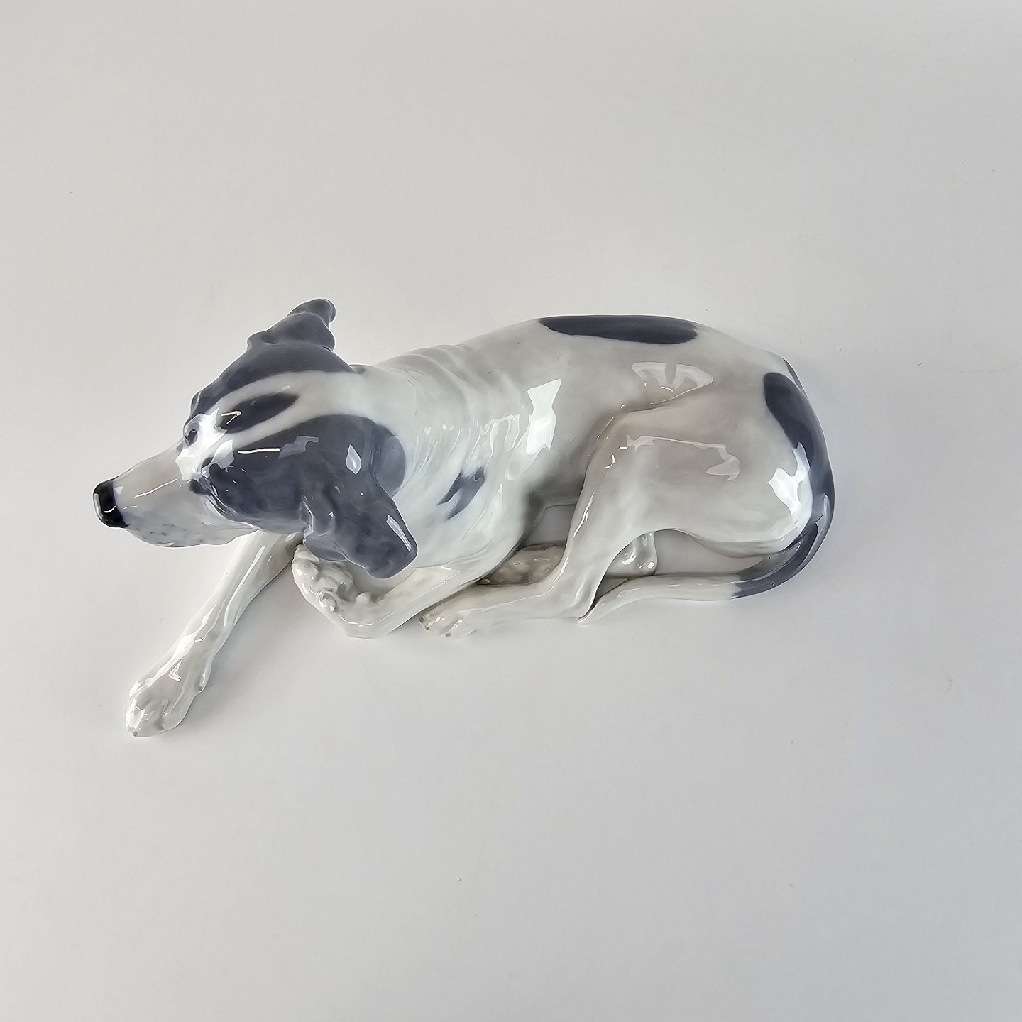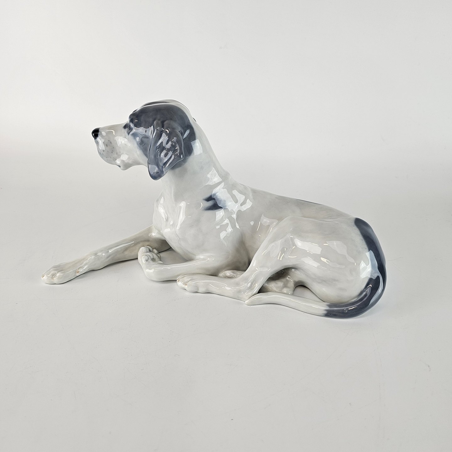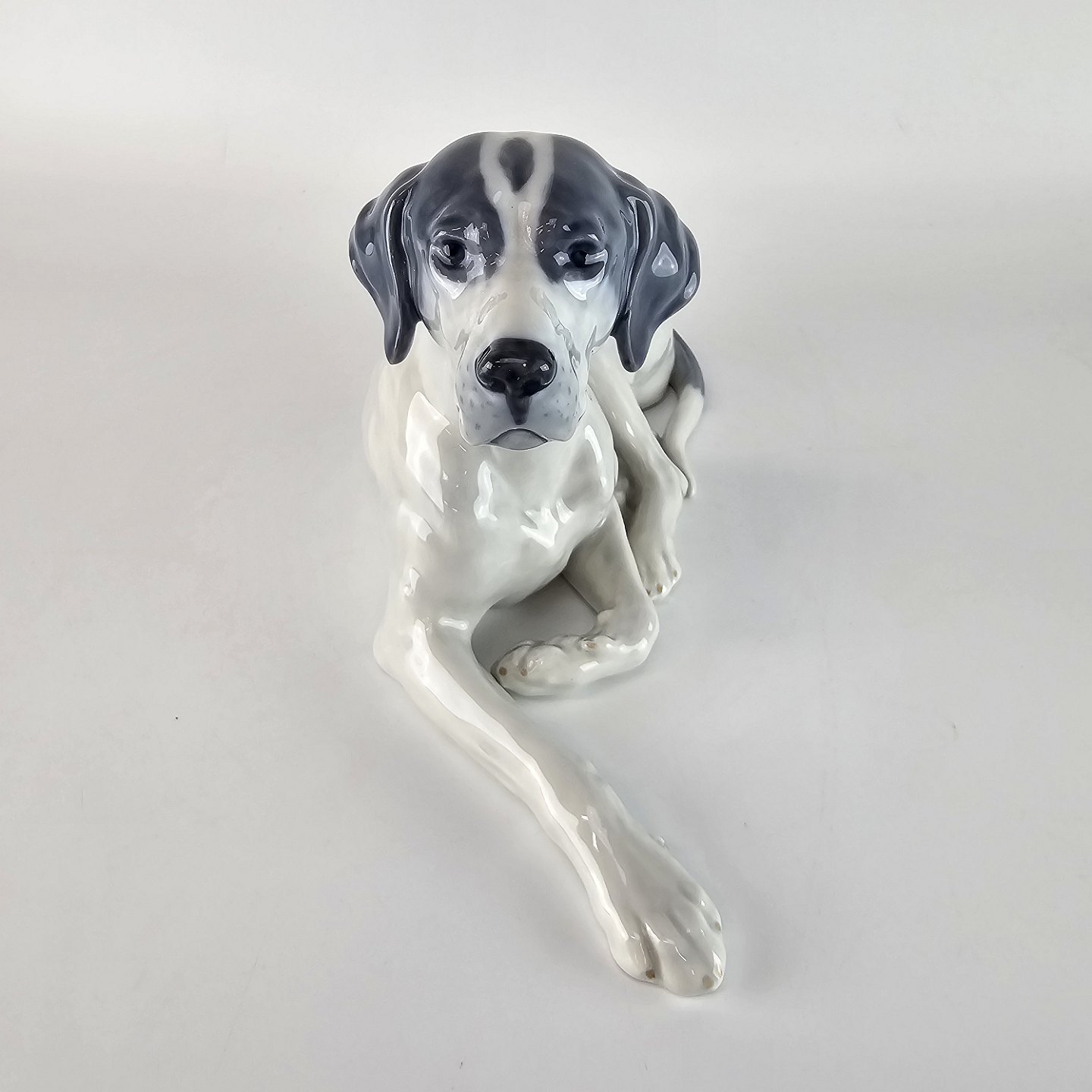 Kongelig porcelæns figur af en liggende hund af racen Pointer nr. 1635