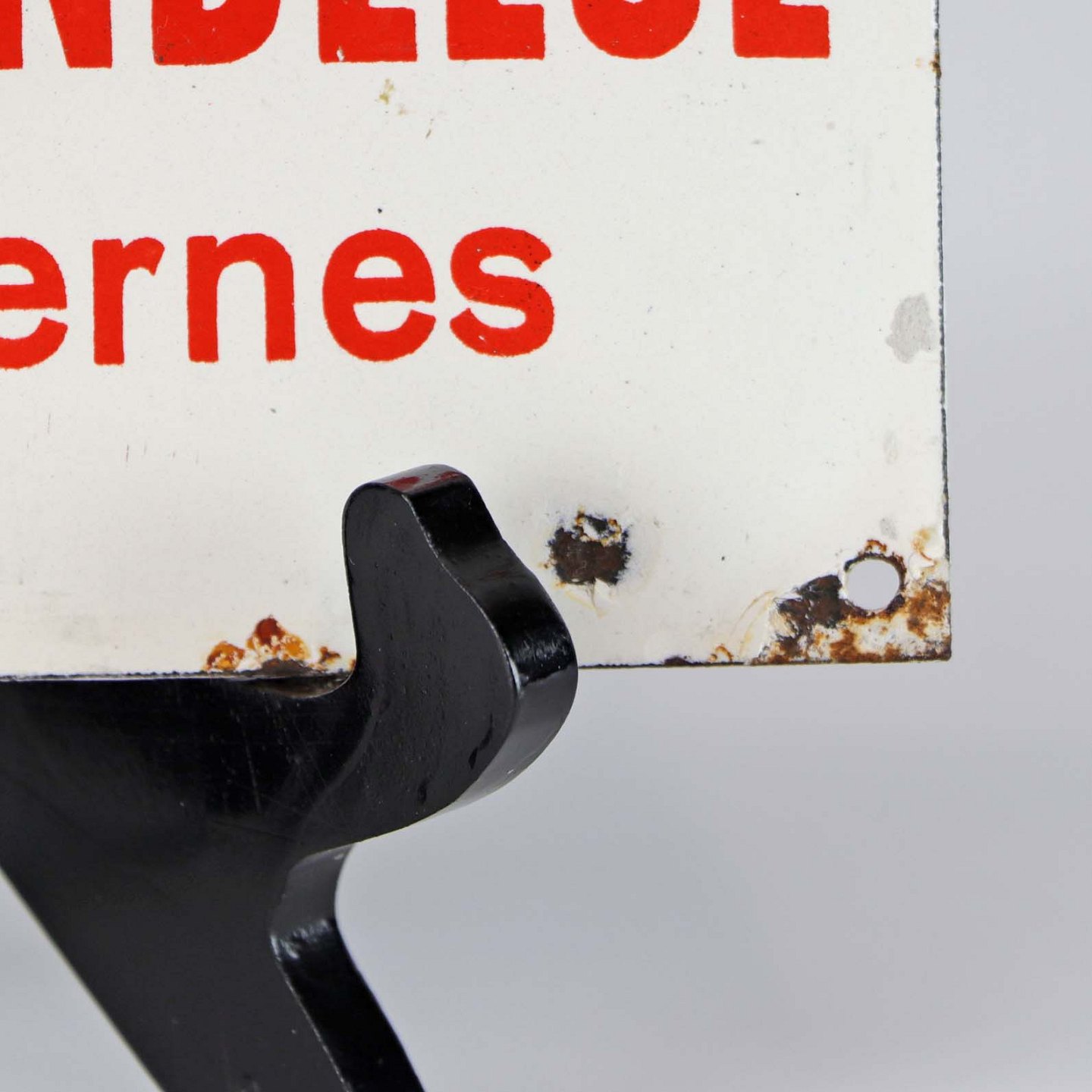 Advarseslskilt i hvid emalje med rød skrift og teksten Jordforbindelse. Må ikke fjernes
