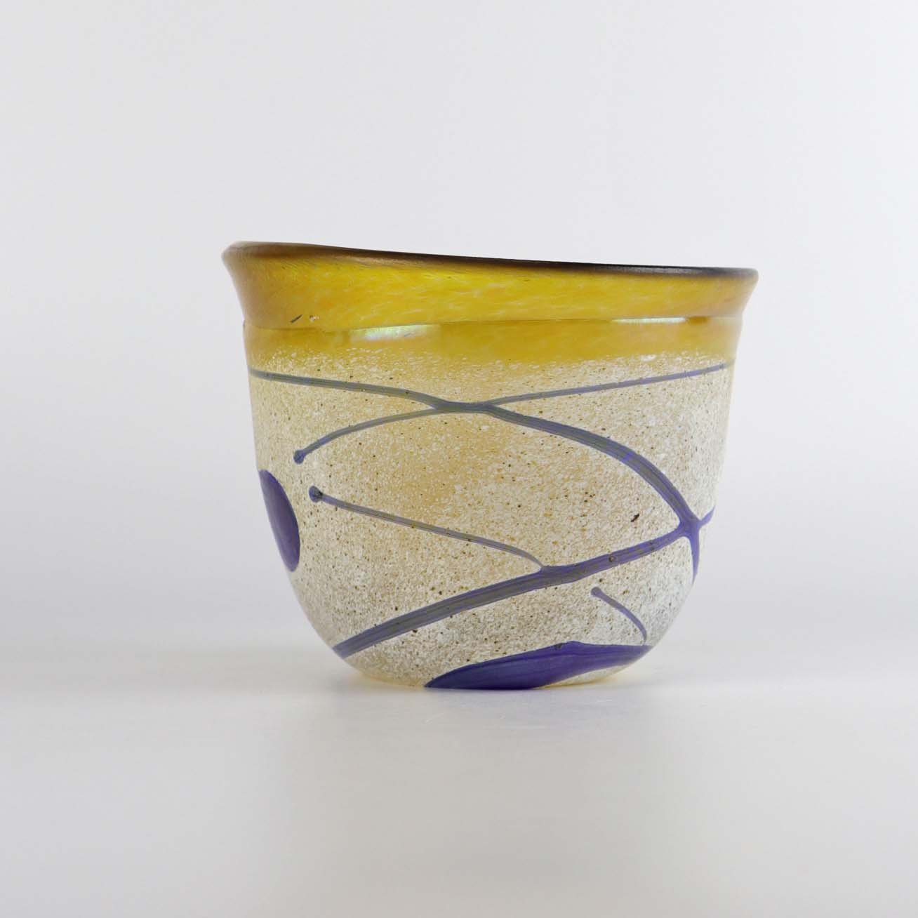 Asymmetrisk vase i kunstglas fra serien Artist collection i hvide, blå og gule nuancer nr. 58016