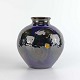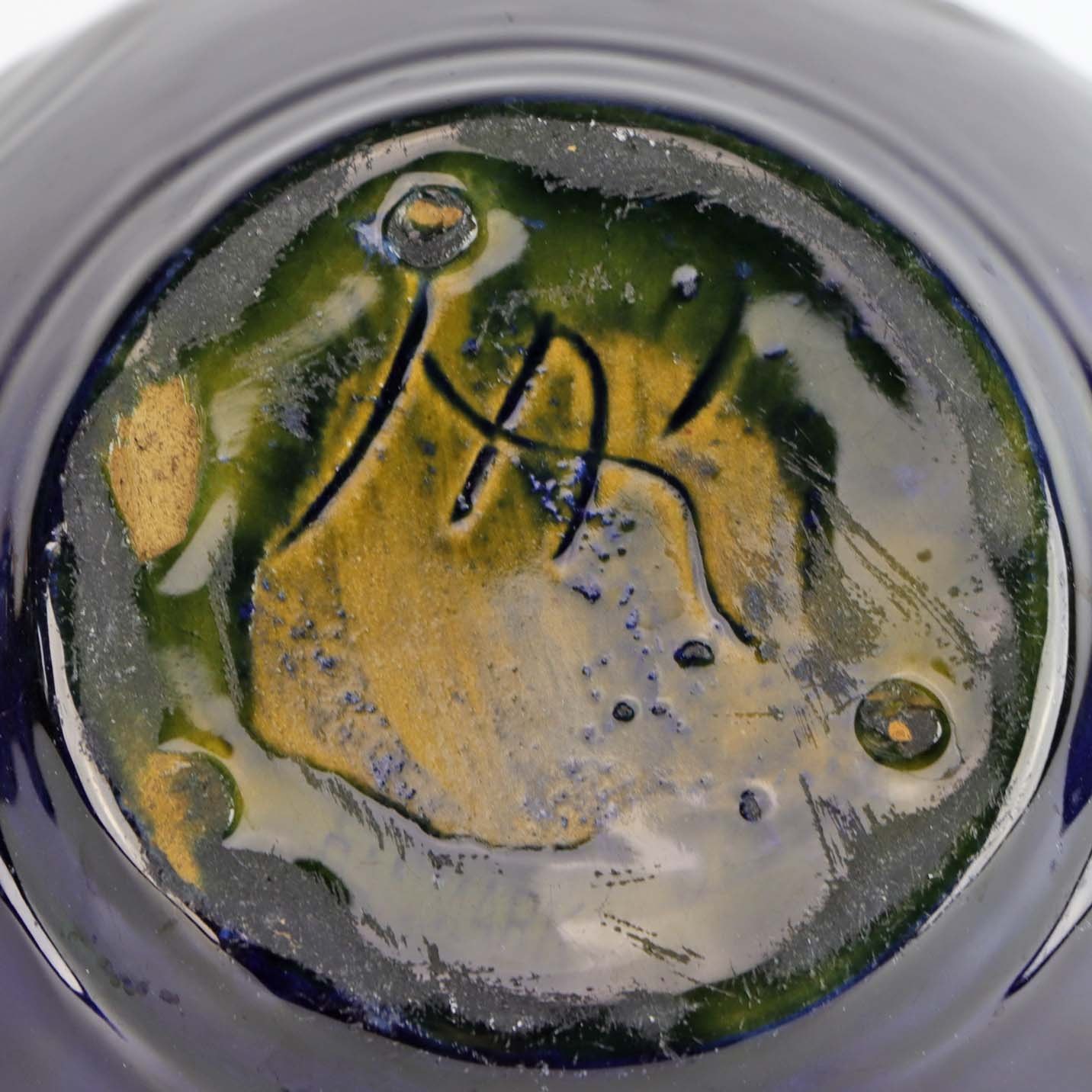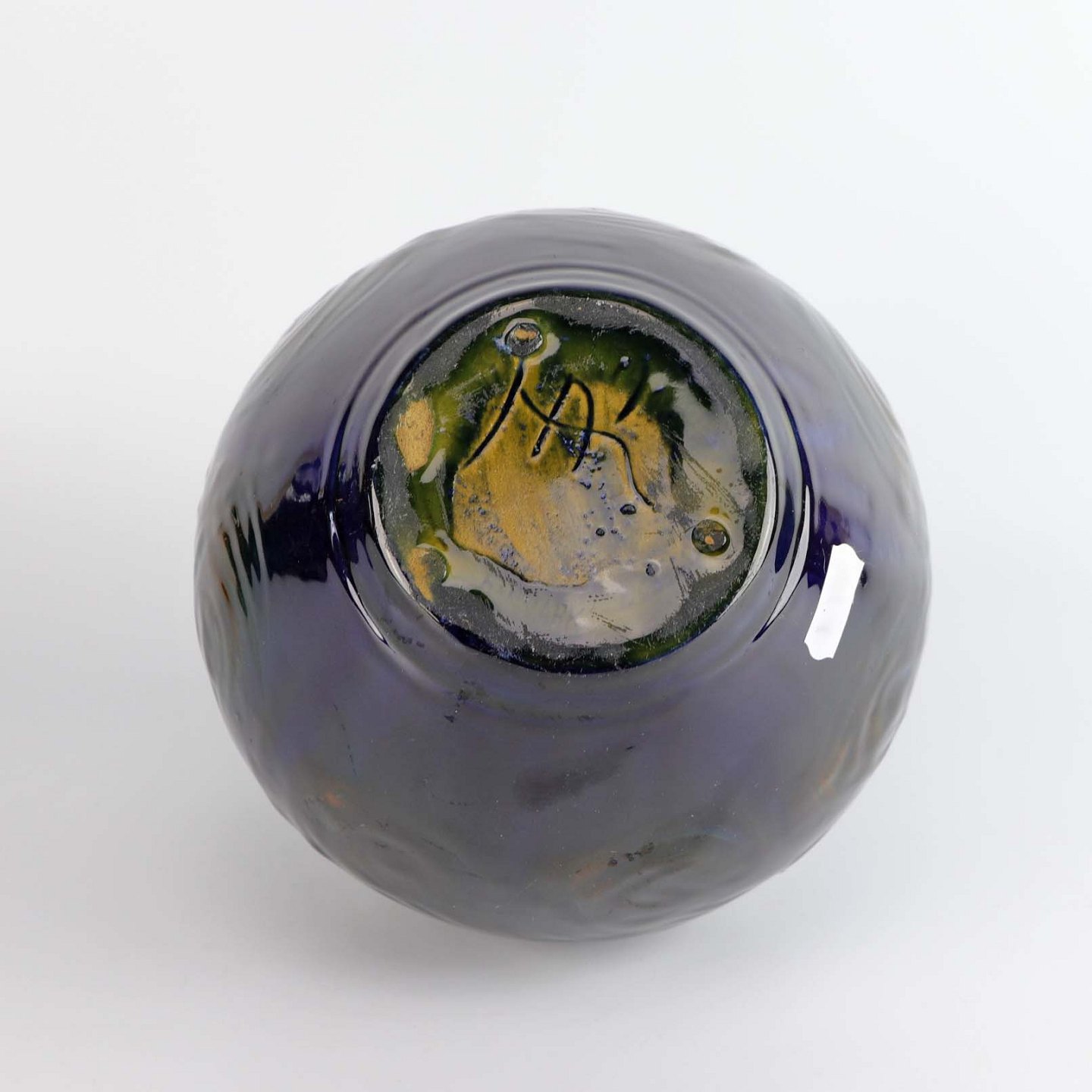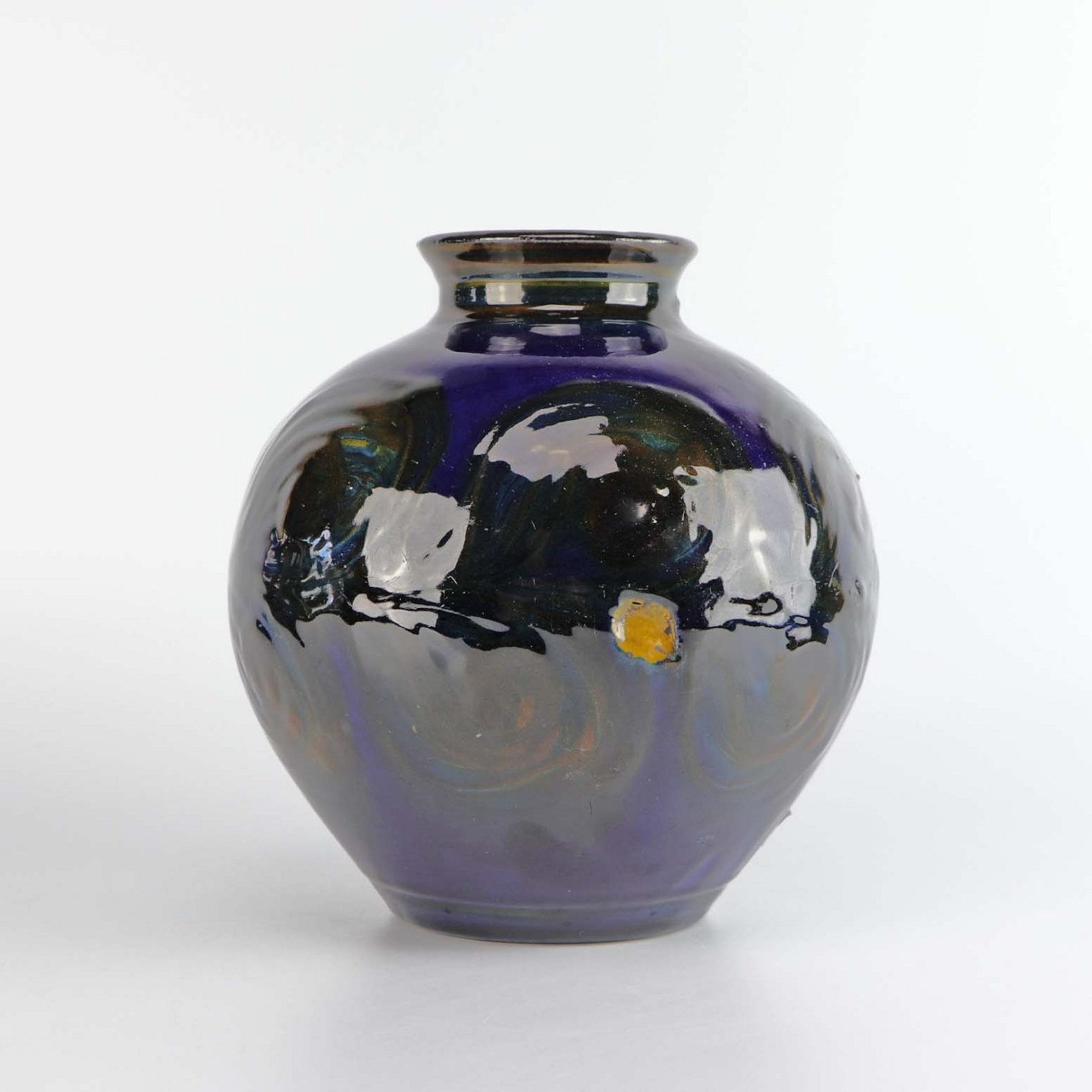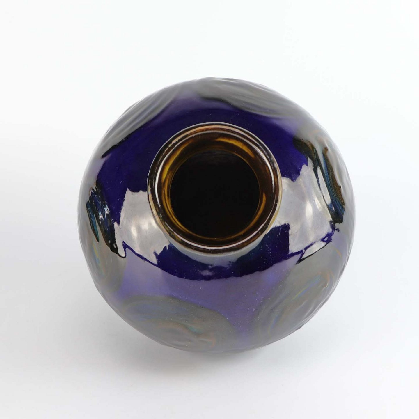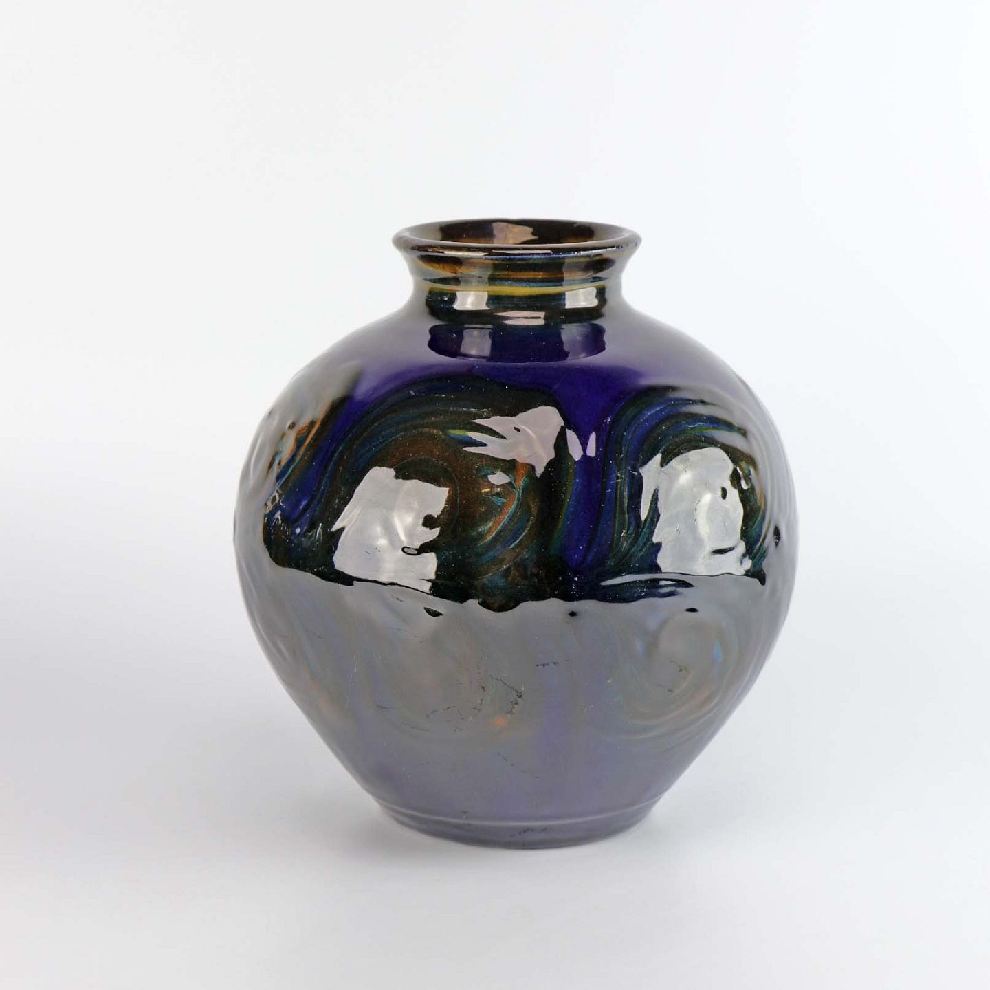 Vase i keramik med mørkblå glasur og abstrakt mønster
