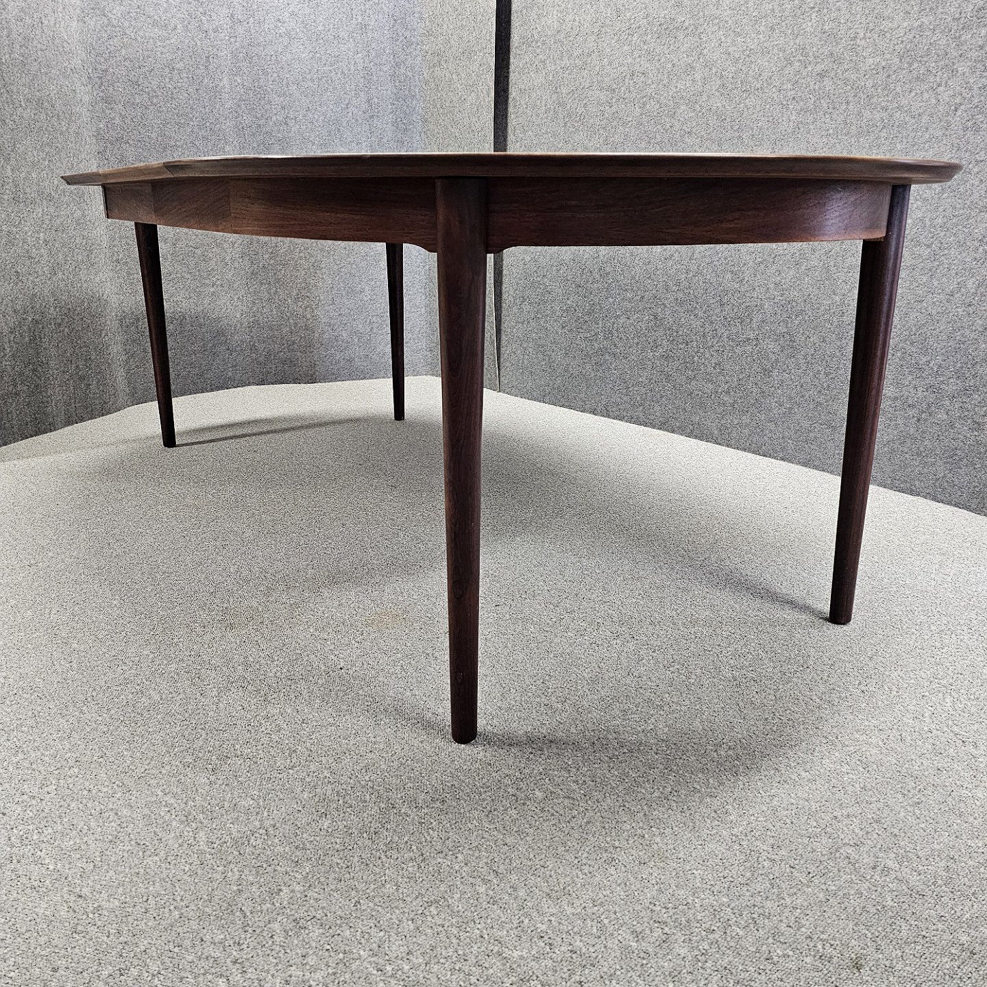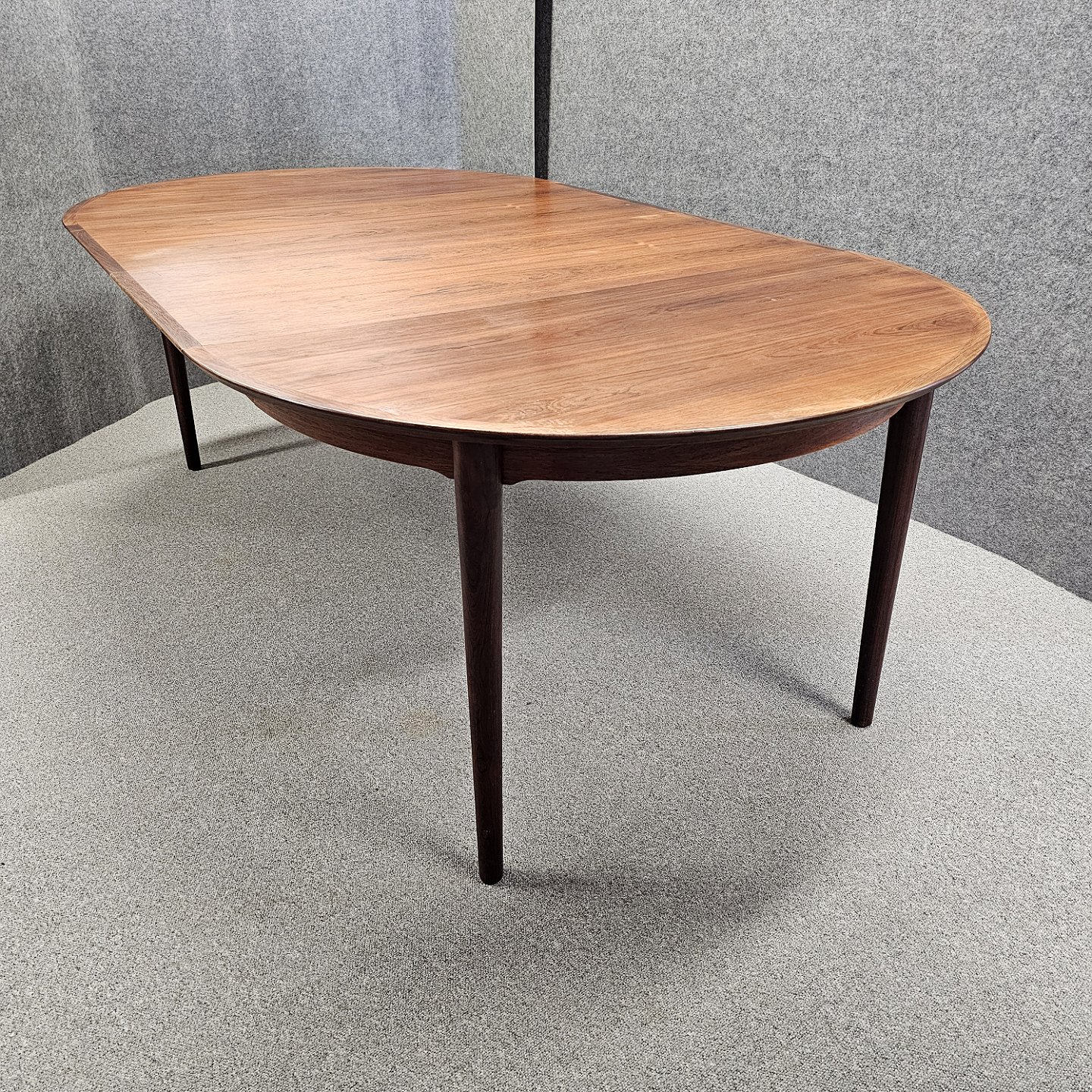 Rundt spisebord i lakeret palisander med to tillægsplader.
