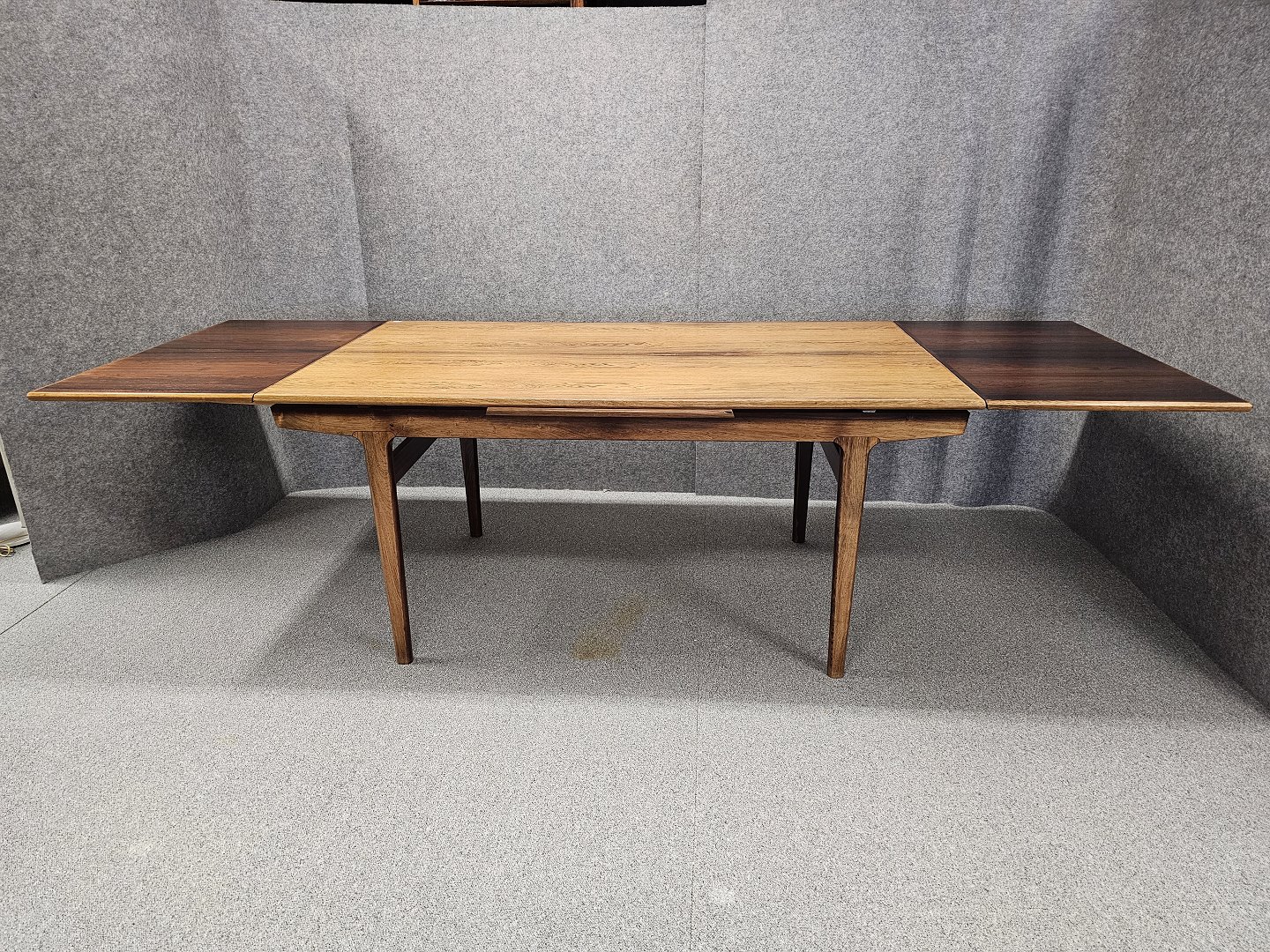 Spisebord i lakeret palisander med hollandsk udtræk i begge ender.