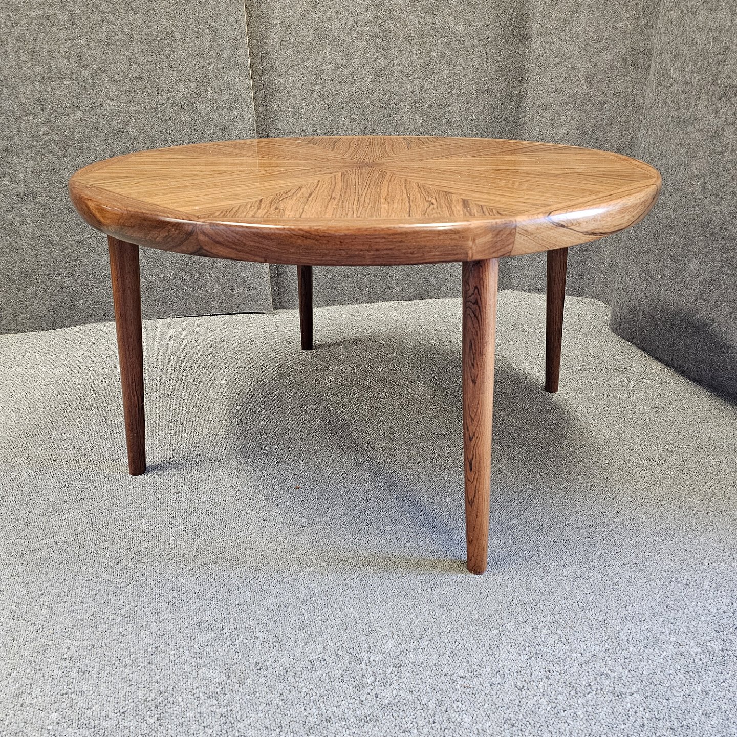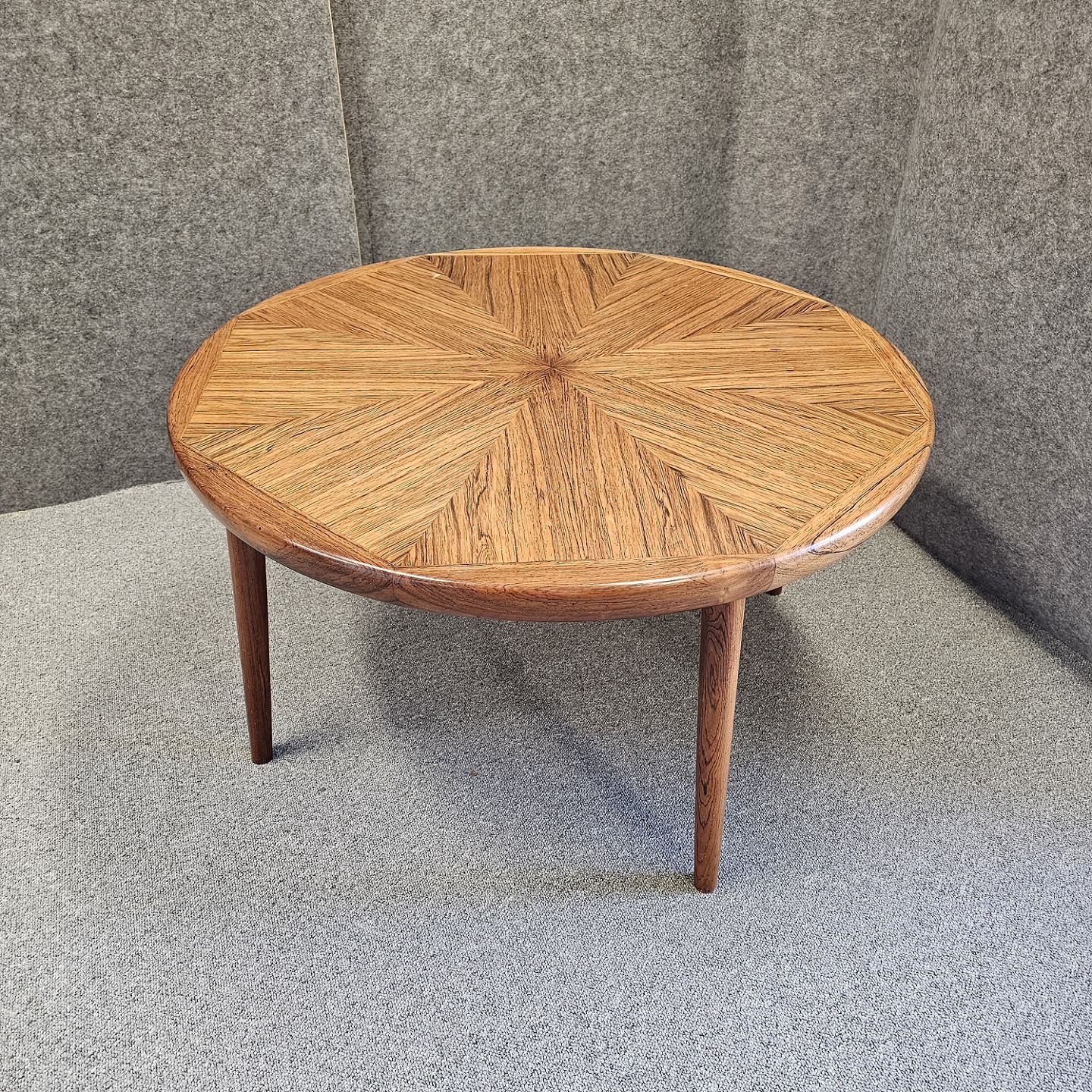 Rundt palisander sofabord mærket Made in Denmark. Model nr. 13/300