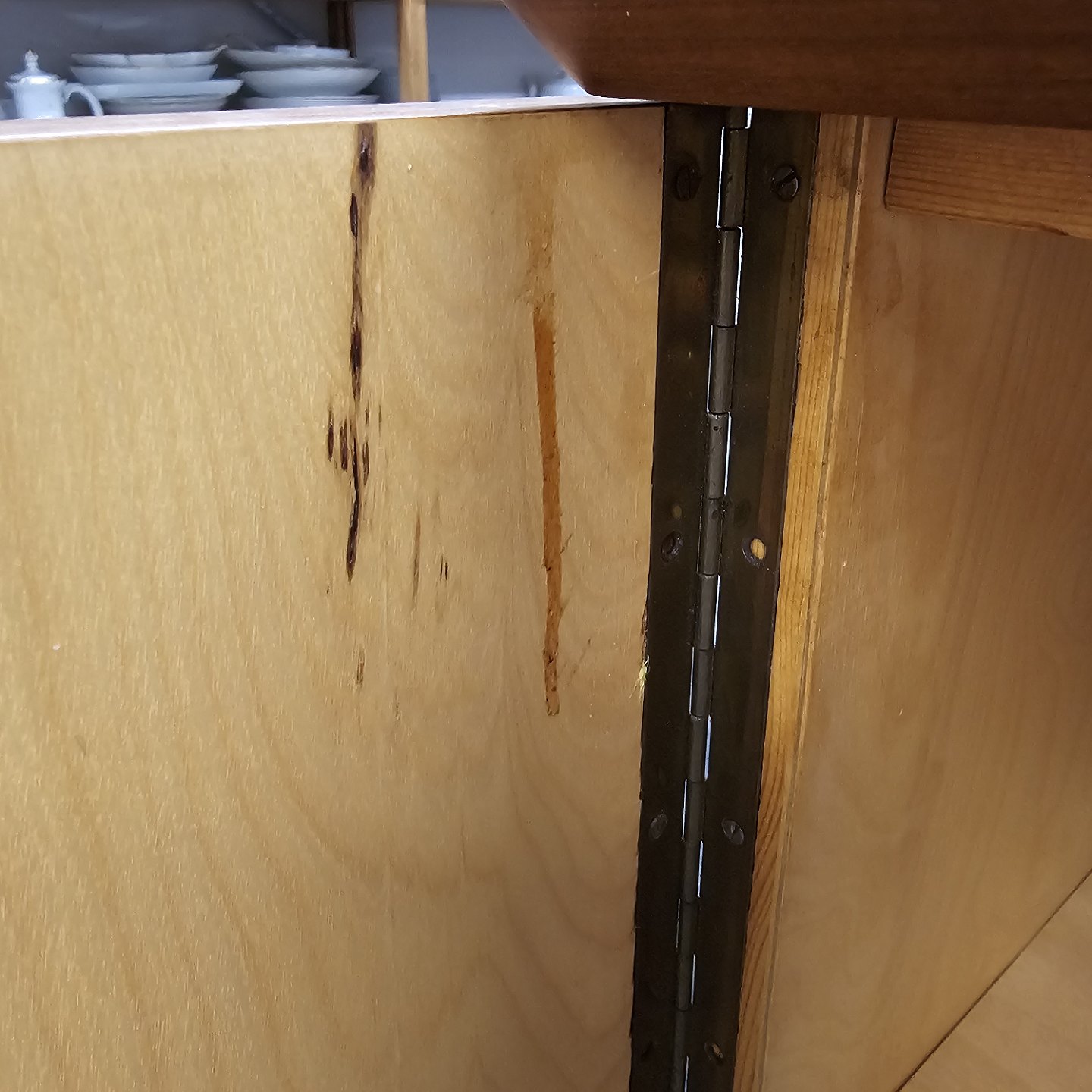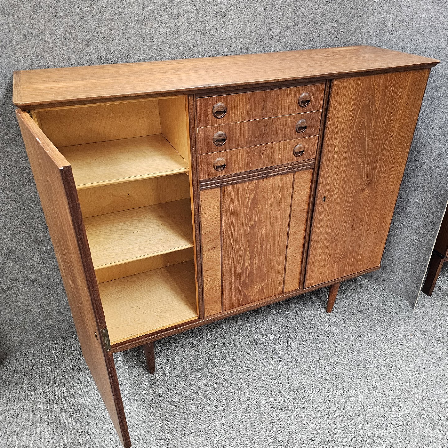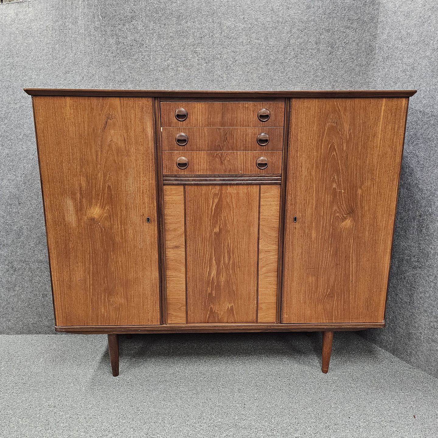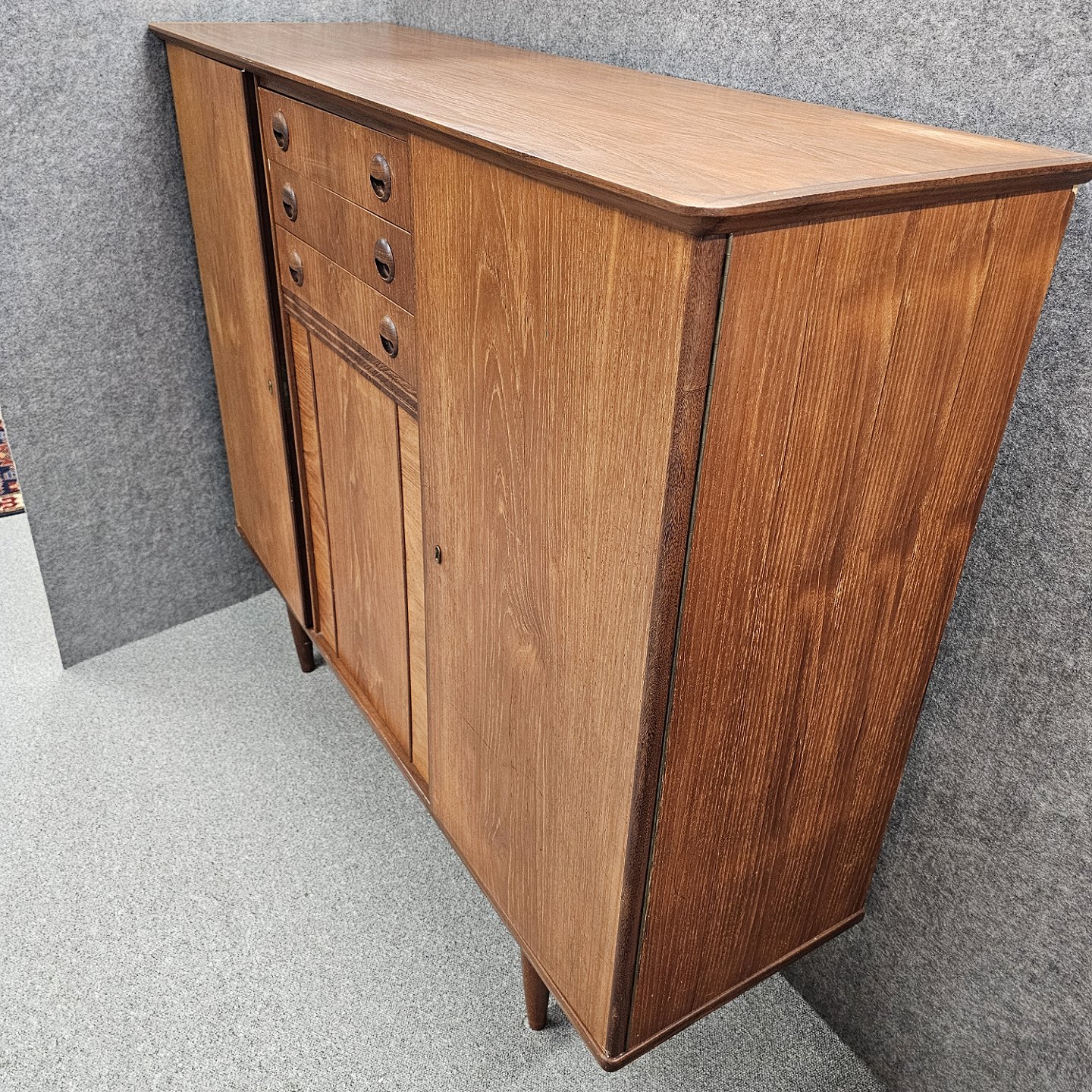 Skænk med hylder, skuffer og skabe med plads til opbevaring.