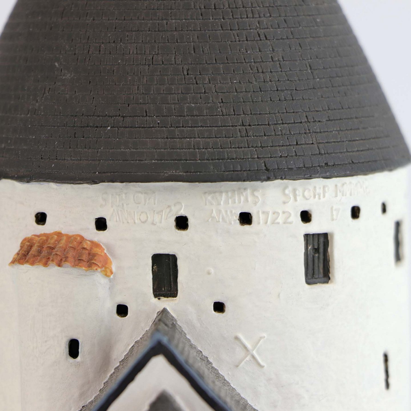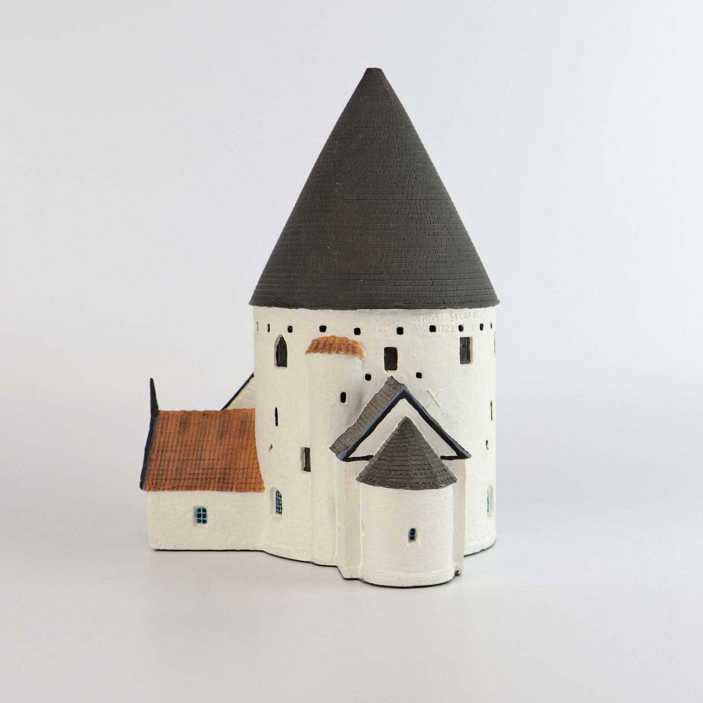 Miniature model i boks af Sant Olafs kirke i Nørre Herred på Bornholm model 56