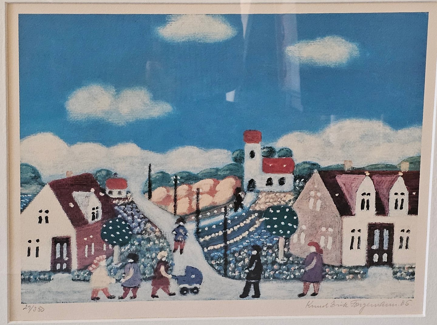 Knud Erik Færgemann litografi landsby 61,5 cm