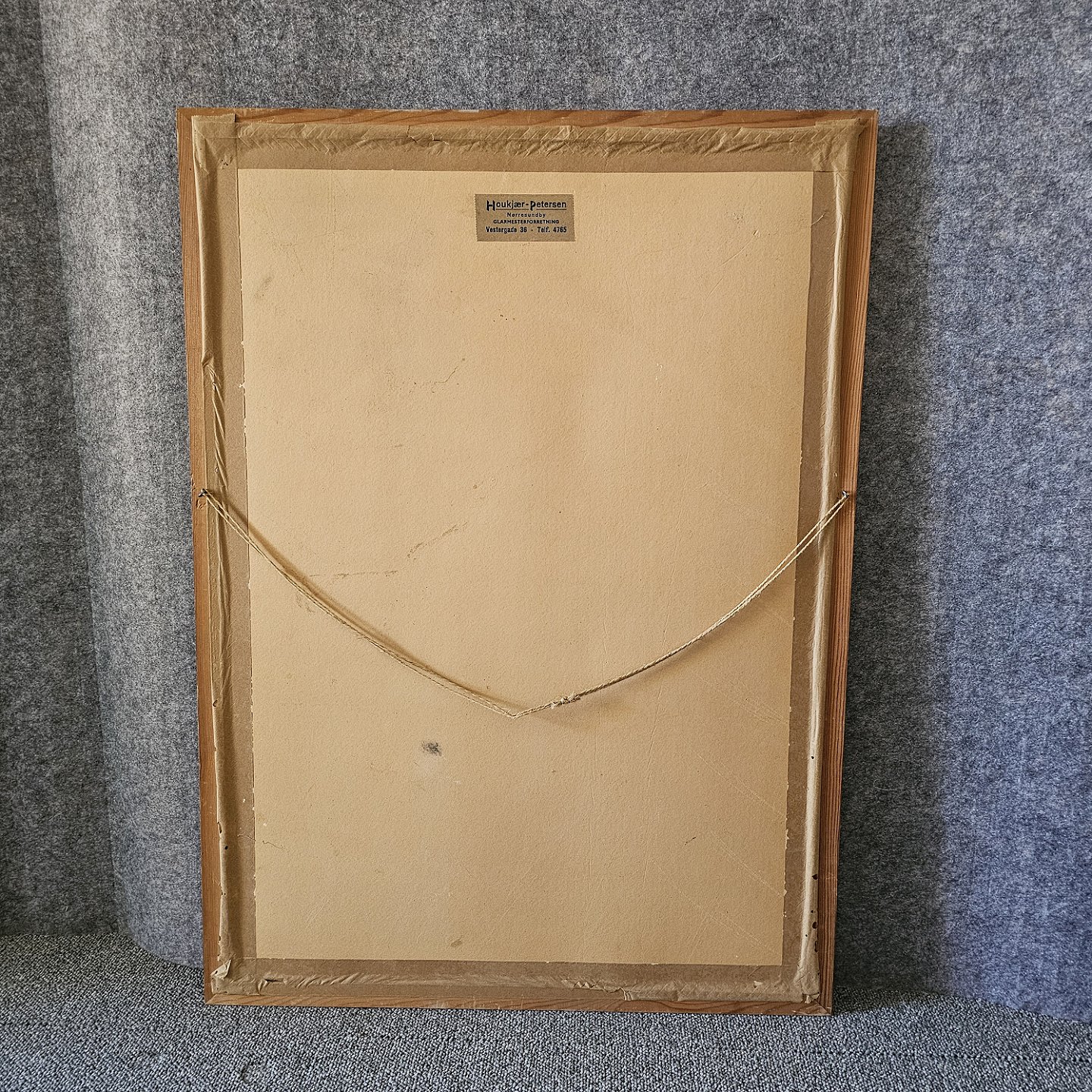 Indrammet tryk i træramme med motiv af mørk afrikaner med favnen fuld af tobaksblade. Brugt til reklame for F.D.B. Cigar og tobaksfabrikker Esbjerg