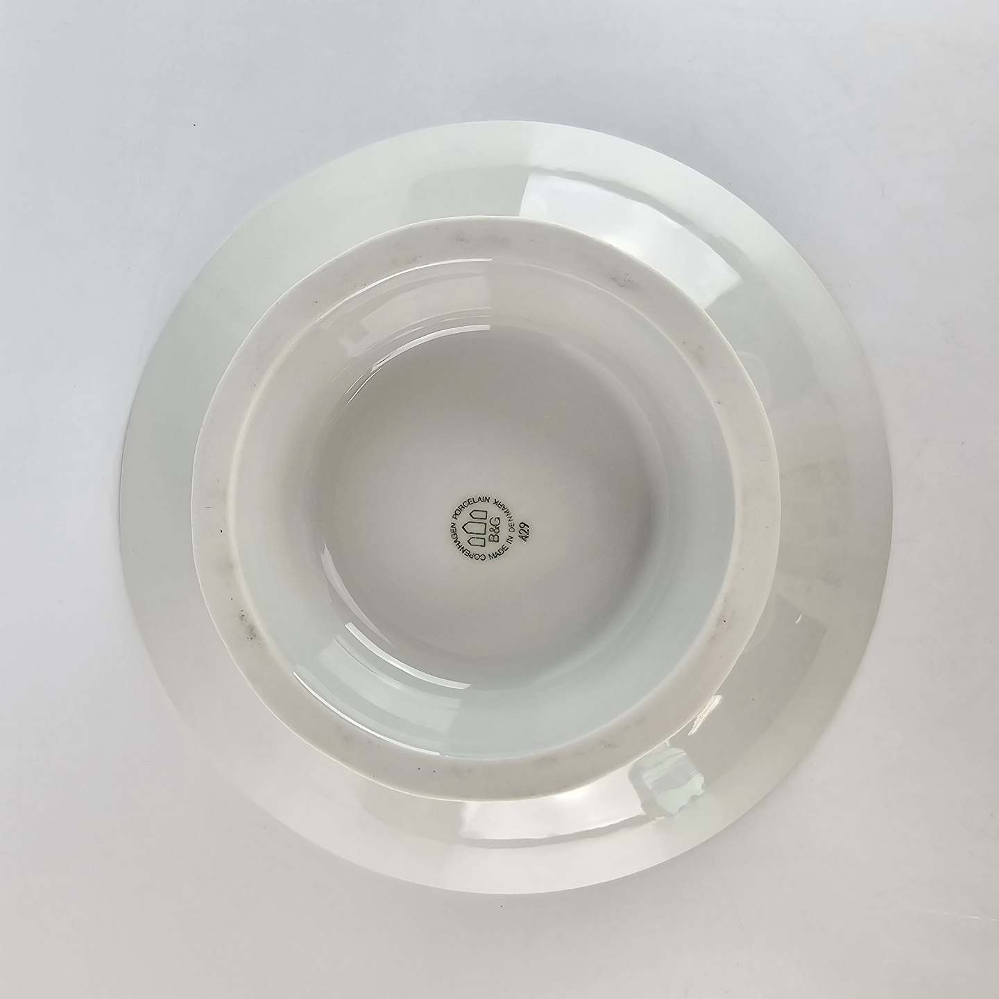 Offenbach er af hvidt porcelæn med et mønster af linjer, der er lavet i porcelænet inden glaseringen. Brugsspor kan forekomme