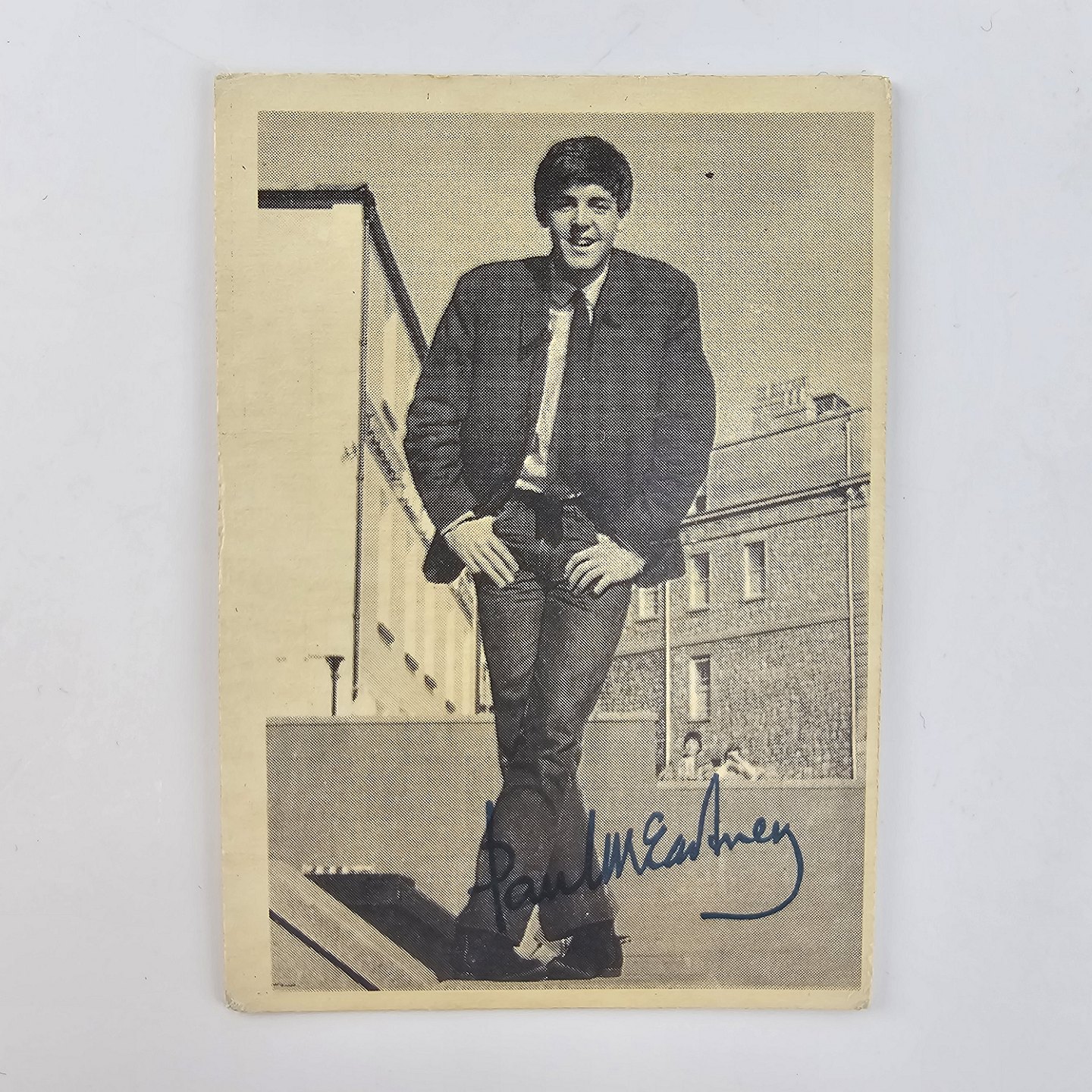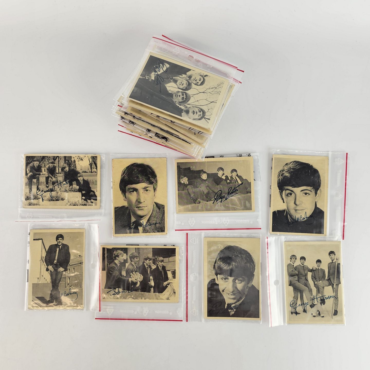 Samlekort af fotos med signaturer fra bandet The Beatles