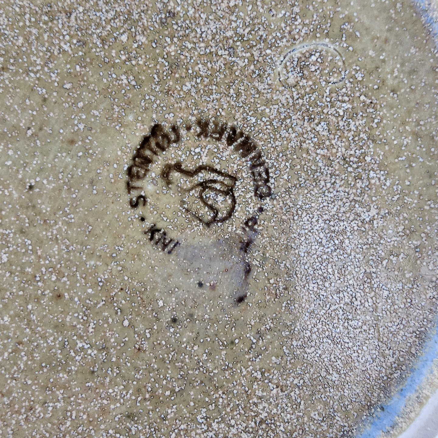 Kakaokande af stentøj og dekoreret med en grønlig nuancefarvet glasering.