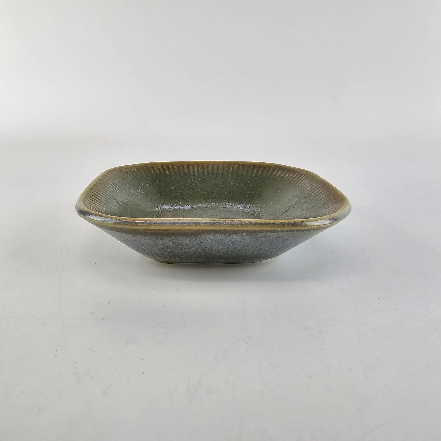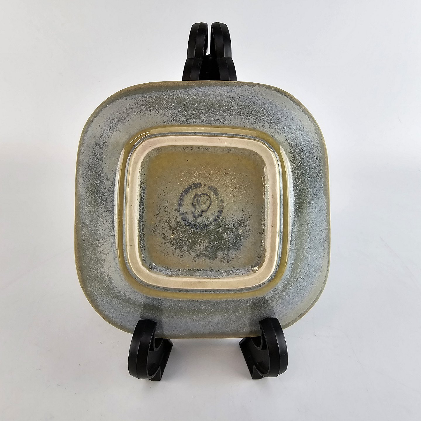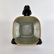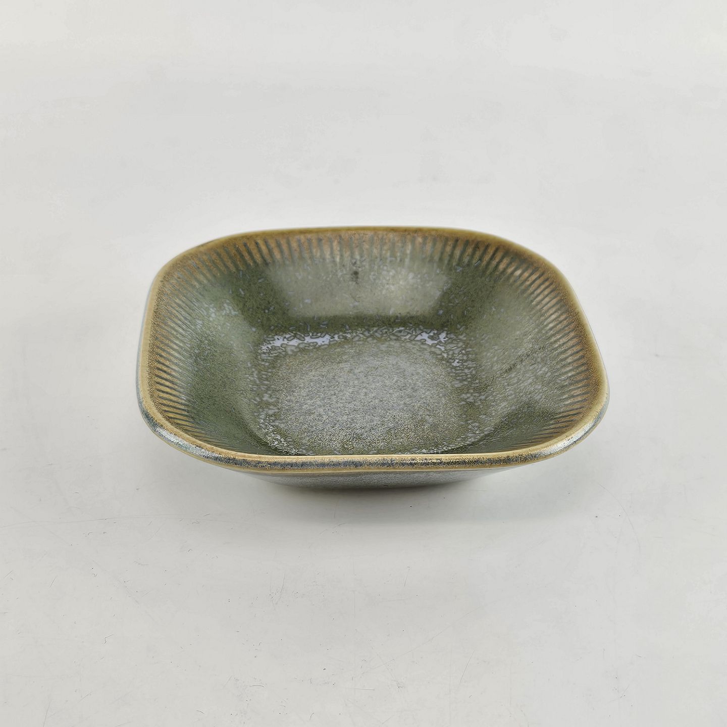 Kvadratisk skål af stentøj og dekoreret med en grønlignuance farvet glasering. Fra serien Knabstrup - ofte kaldet Grøn Nøddebo
