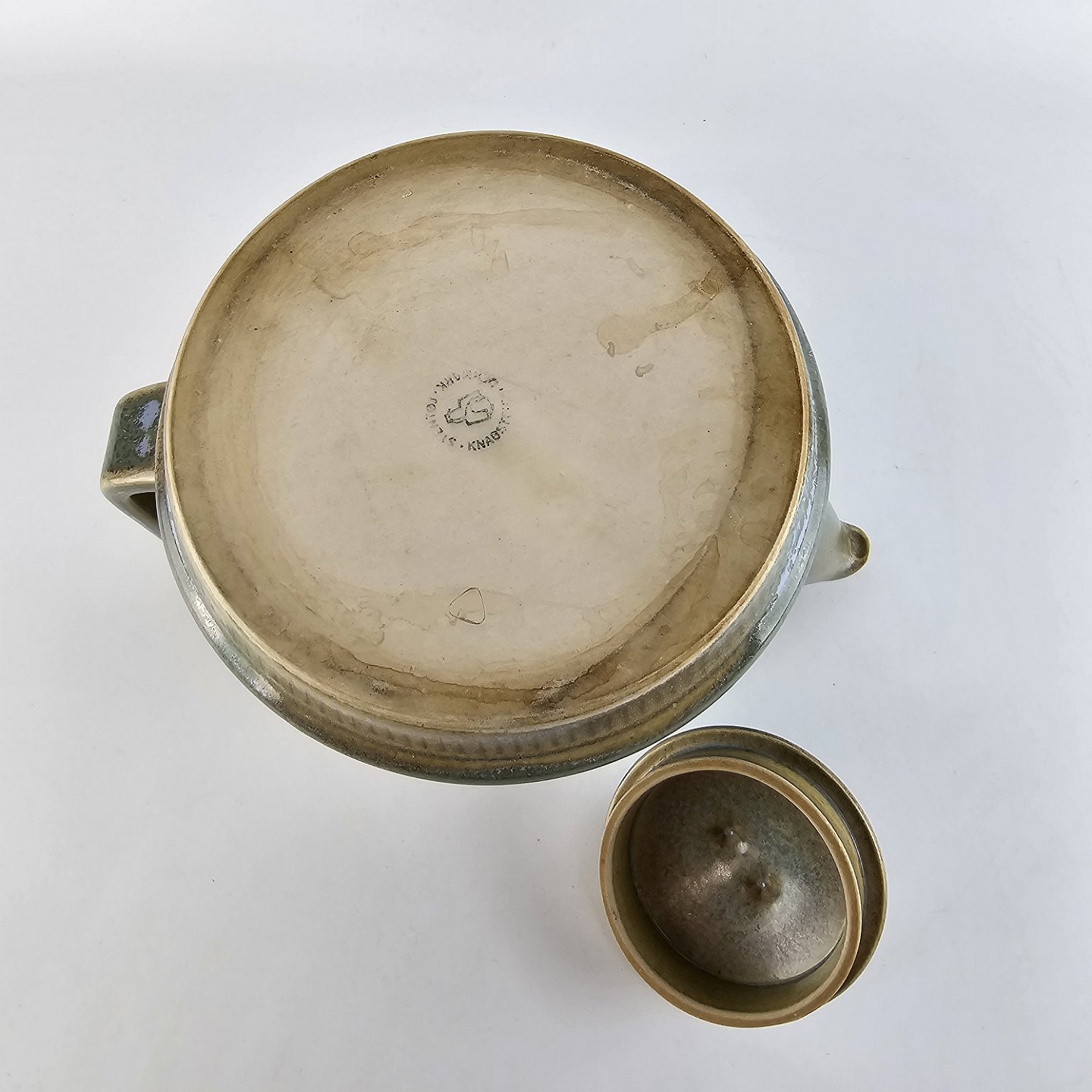 Tekande med låg af stentøj og dekoreret med en grønlig nuancefarvet glasering. Fra serien Knabstrup - ofte kaldet Grøn Nøddebo
