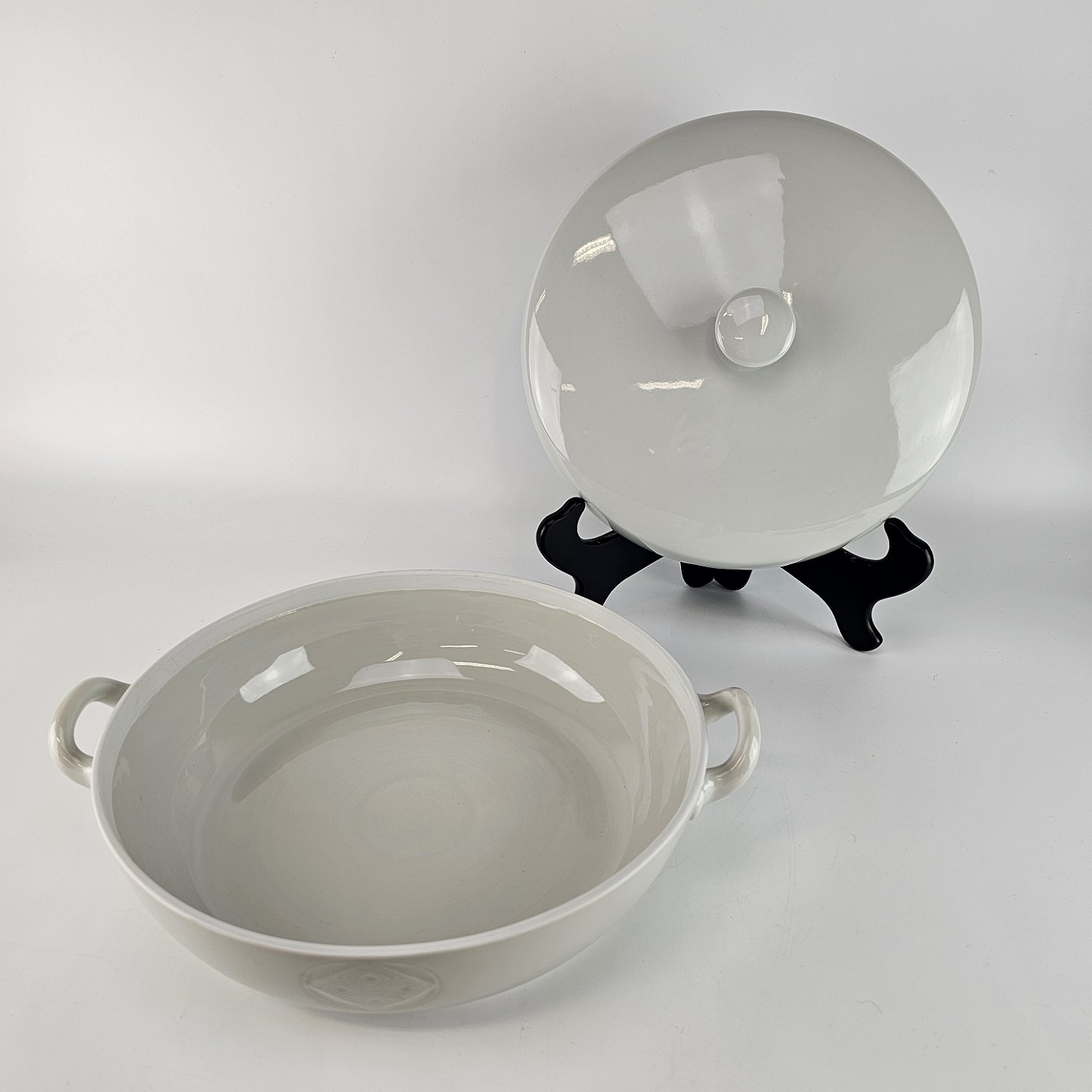 Gemma er porcelæn med gråblå glasur. På Latin betyder Gemma udskåren eller tilsleben ædelsten, hvilket henviser til dekorationen, der er udskåret i porcelænet