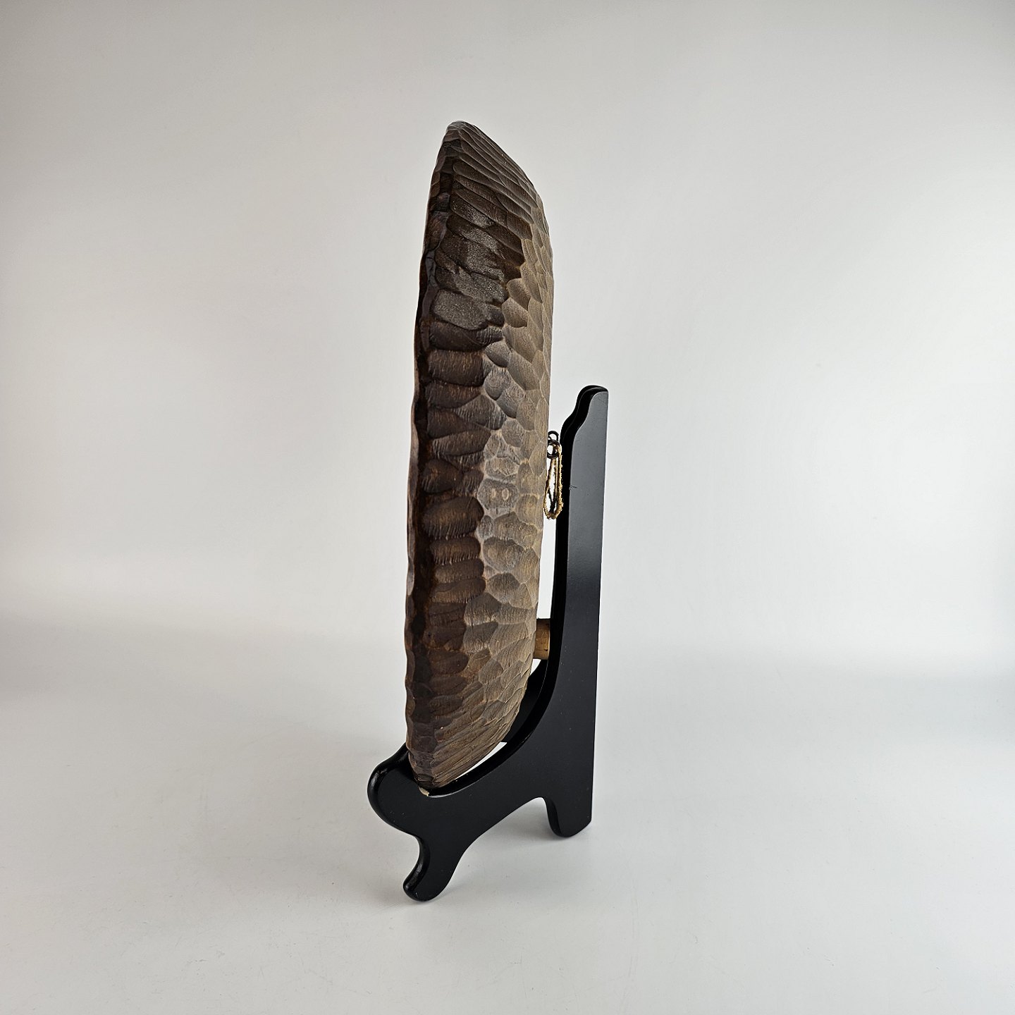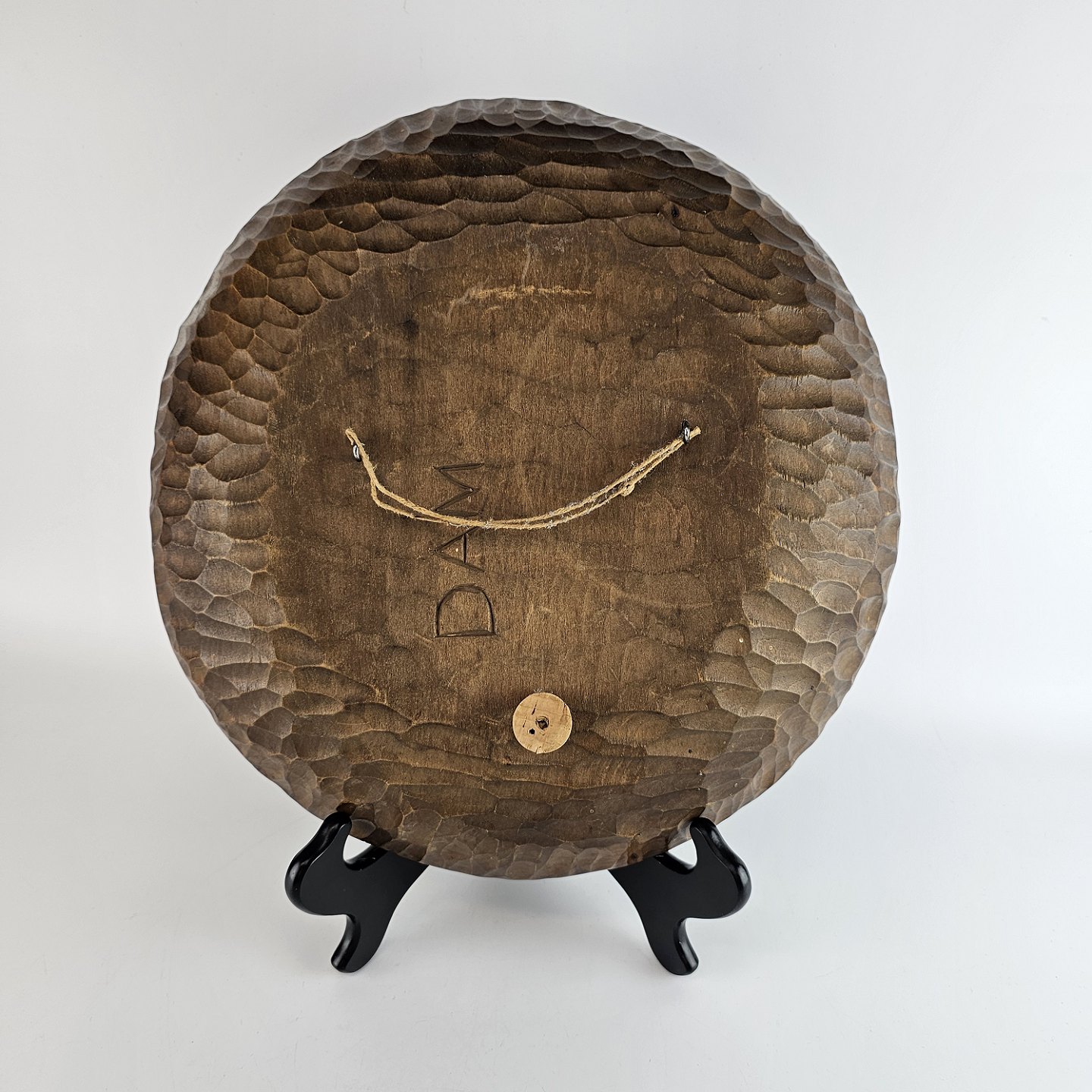 Rundt trærelief til ophæng med motiv af havfantasiuhyre.