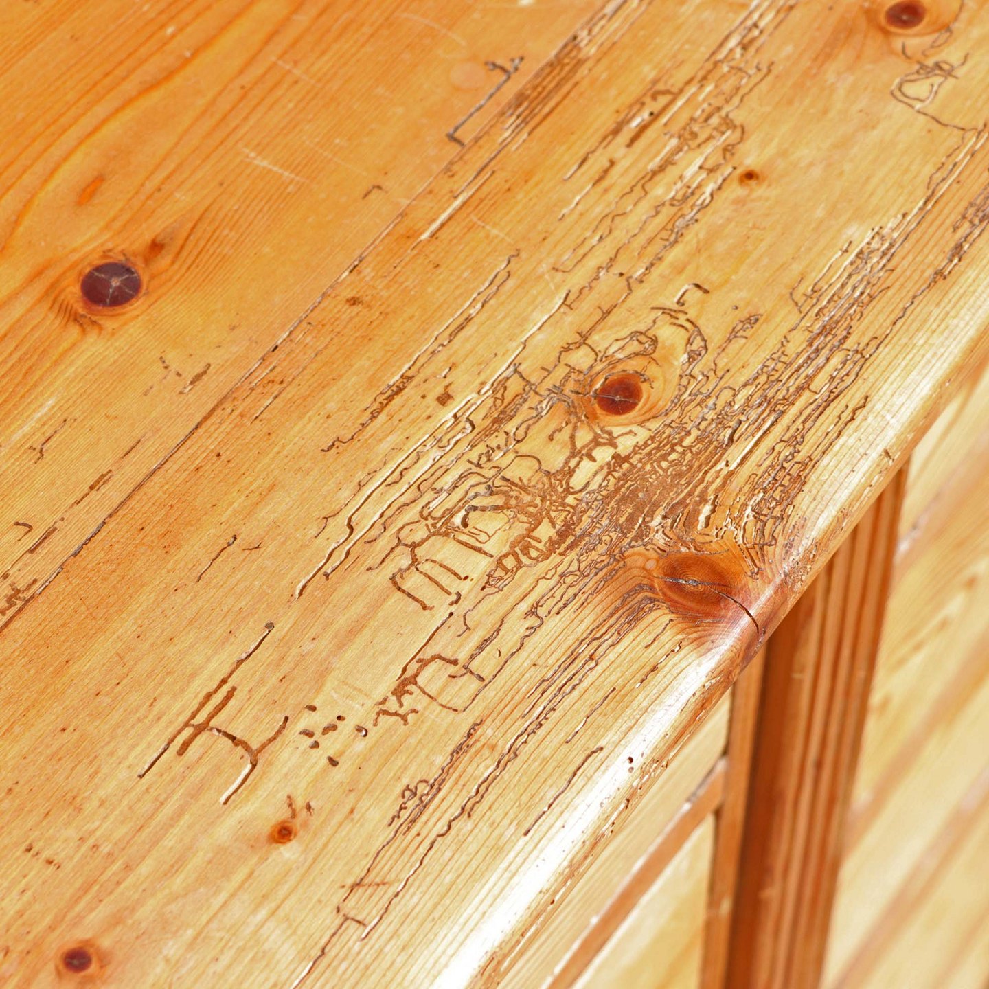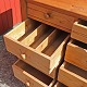 Fremstår med brugsspor og en revne i bunden af en enkelt skuffe samt få tip i træet i bunden af en anden skuffe
