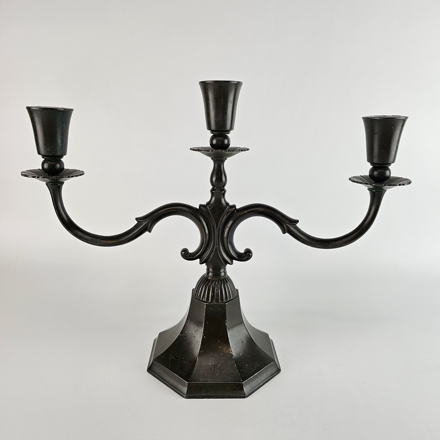 Art Deco lysestage af diskometal og med tre arme nr. 155