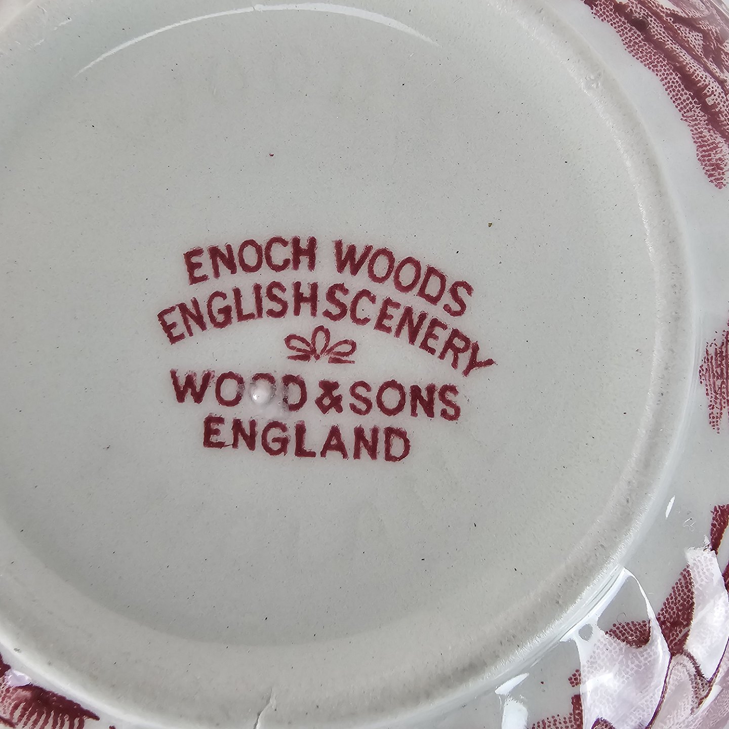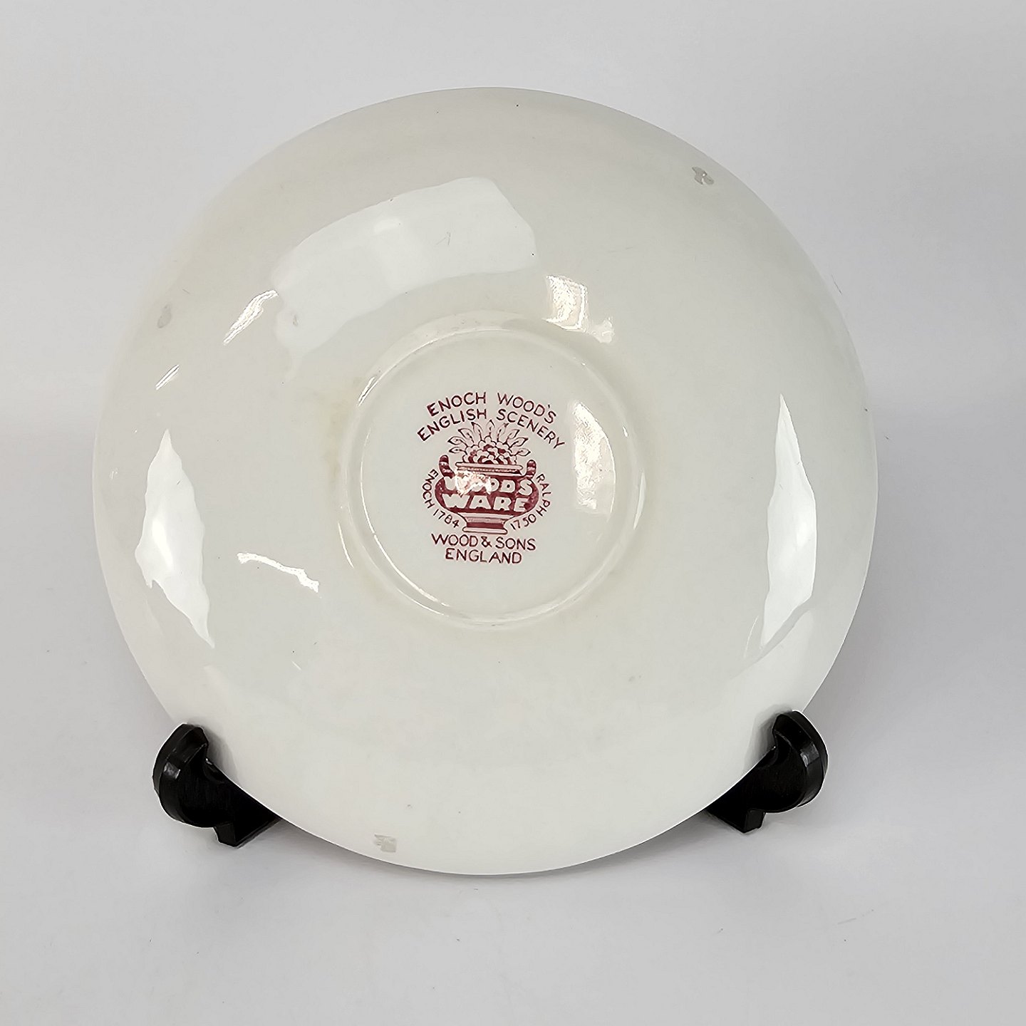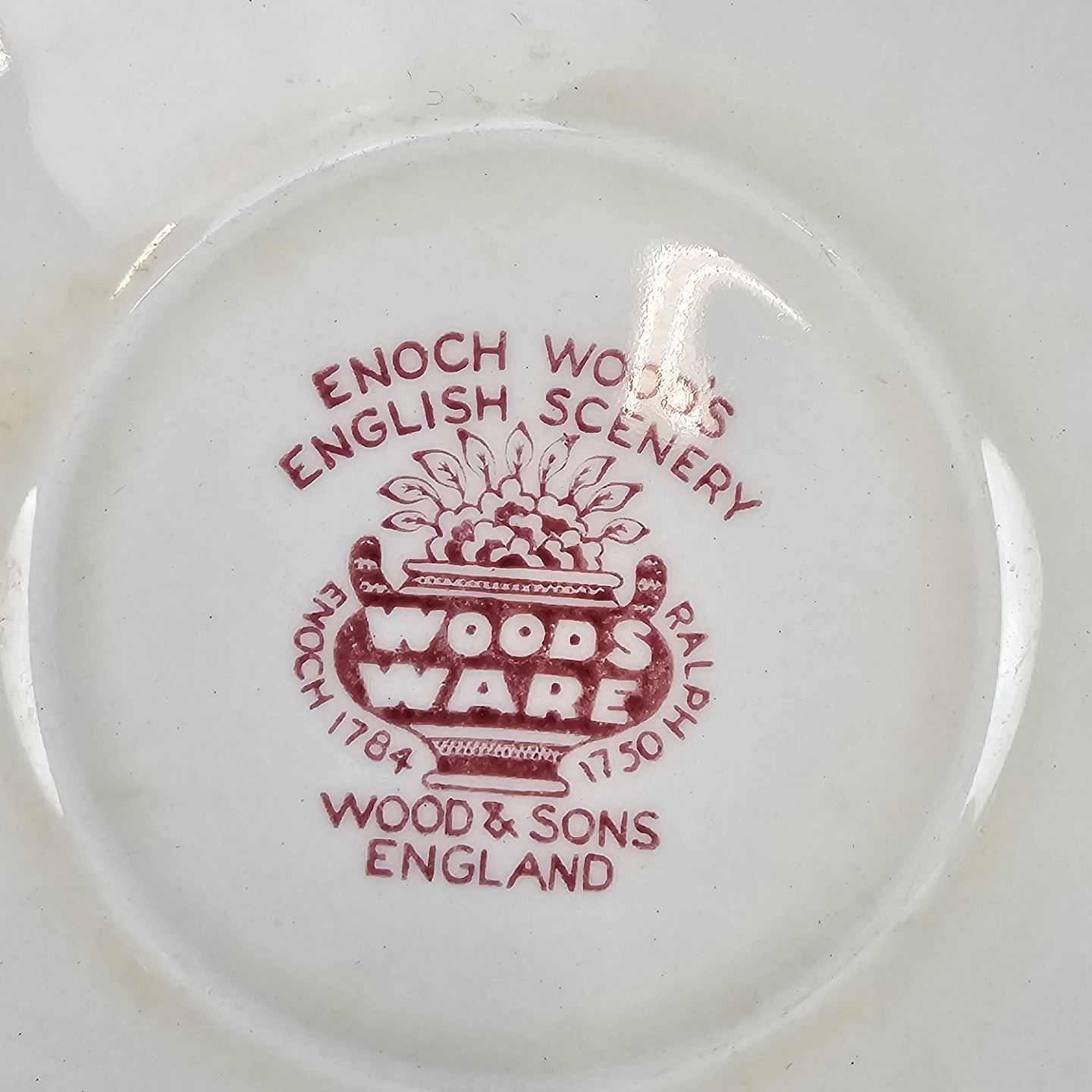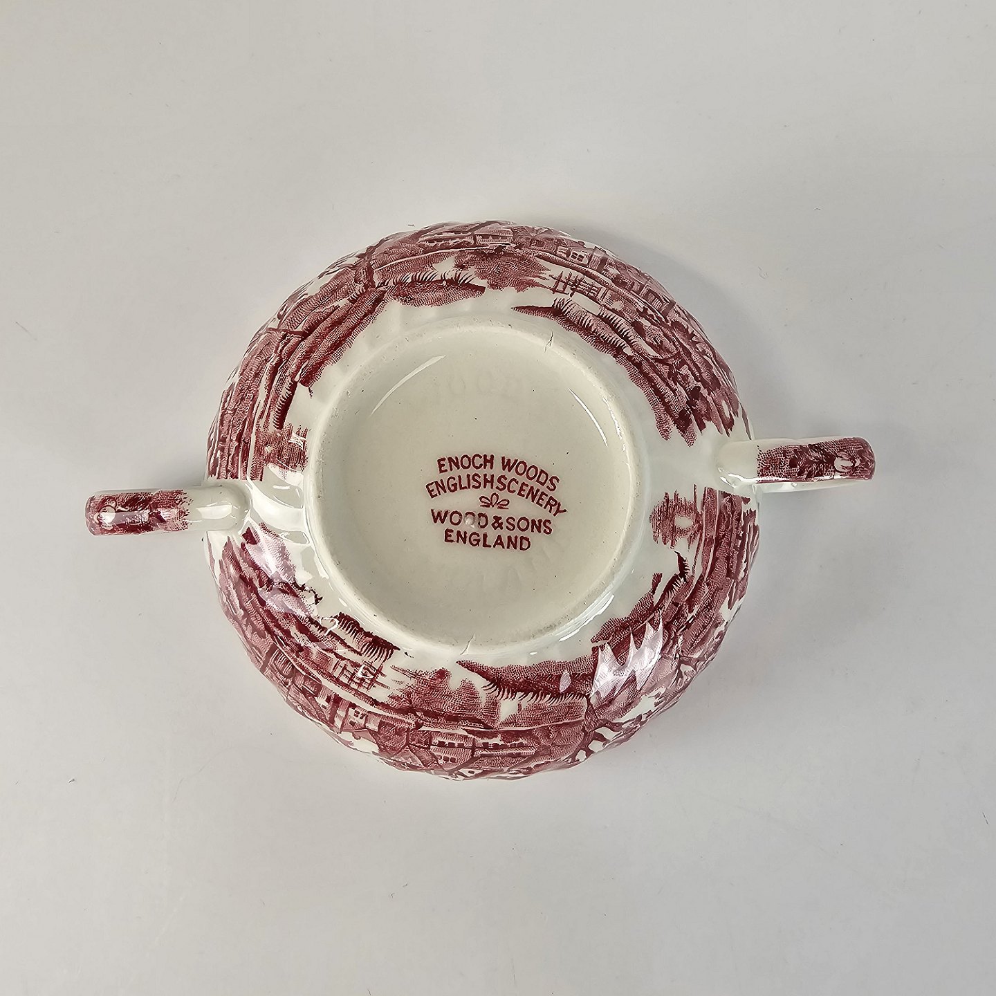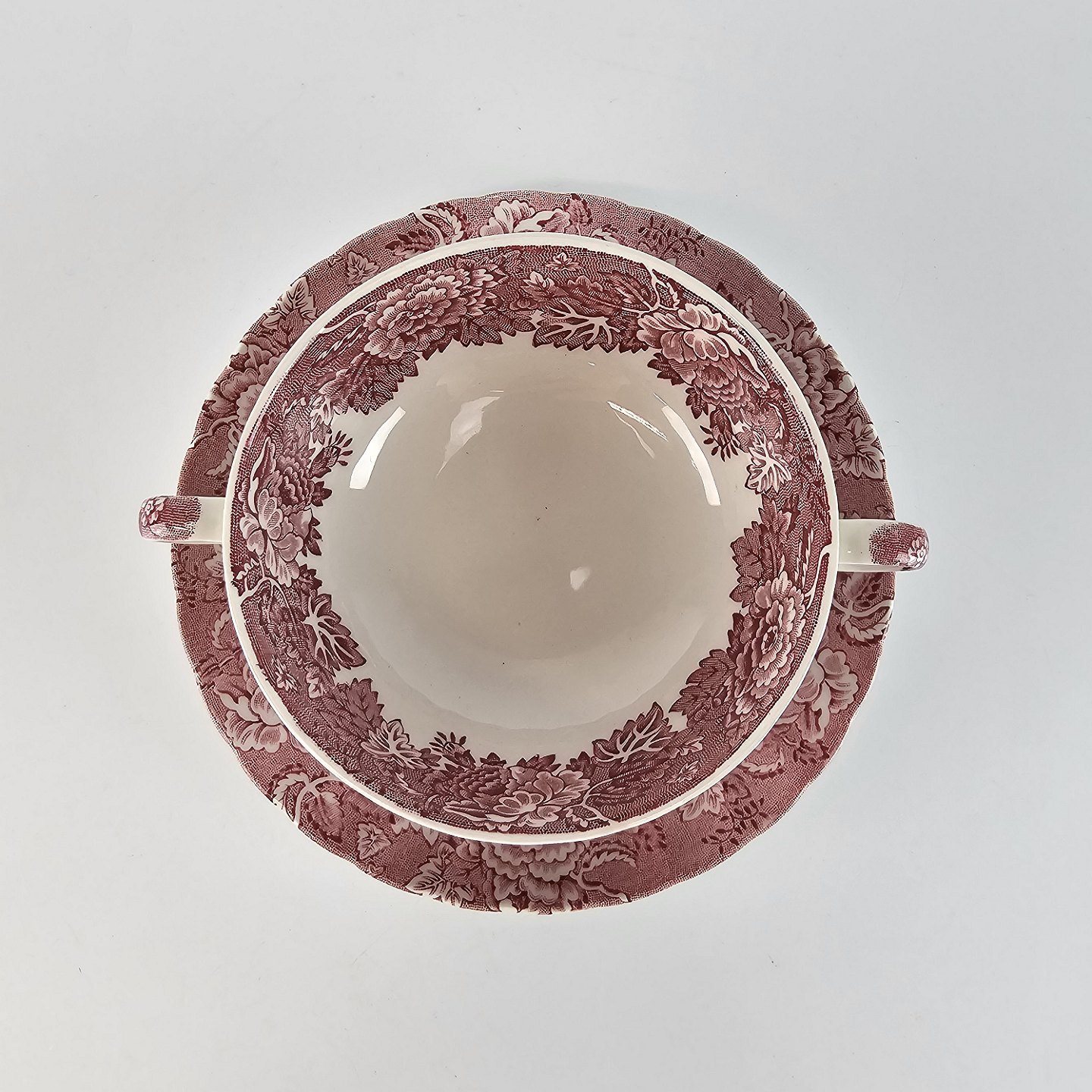 Bouillon kop med underkop fra det engelske stel Rød Paris (Enoch wood's, English scenery)