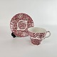 Kaffekop med underkop fra det engelske stel Rød Paris (Enoch wood's, English scenery)