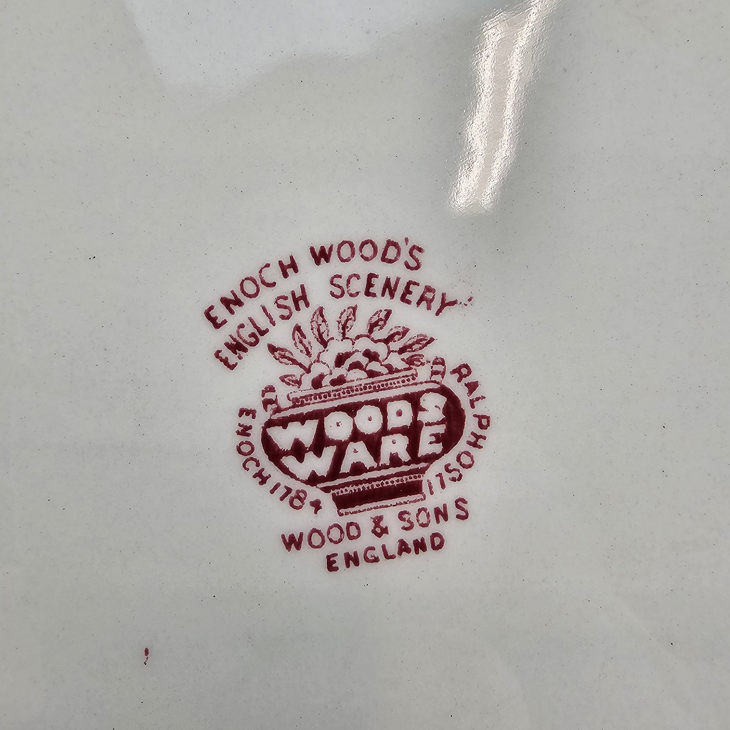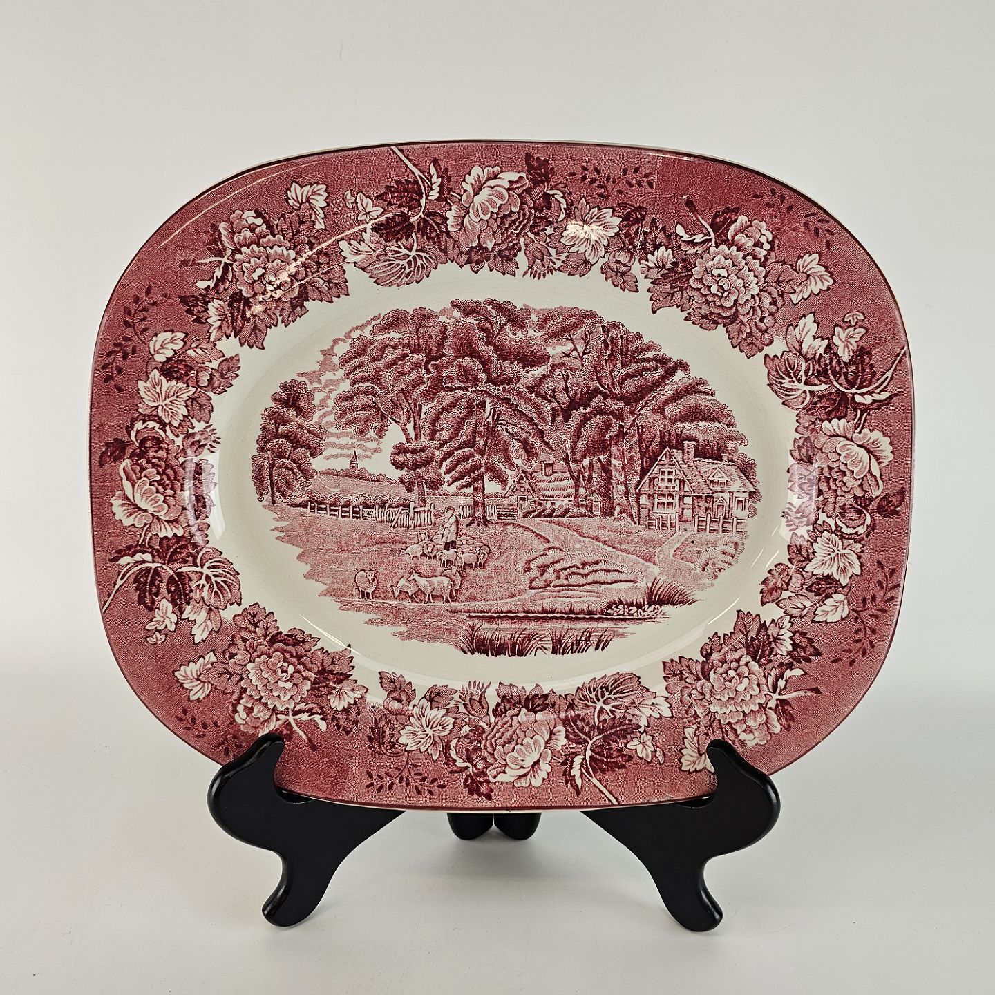 Rektangulært fad fra det engelske stel Rød Paris (Enoch wood's, English scenery)