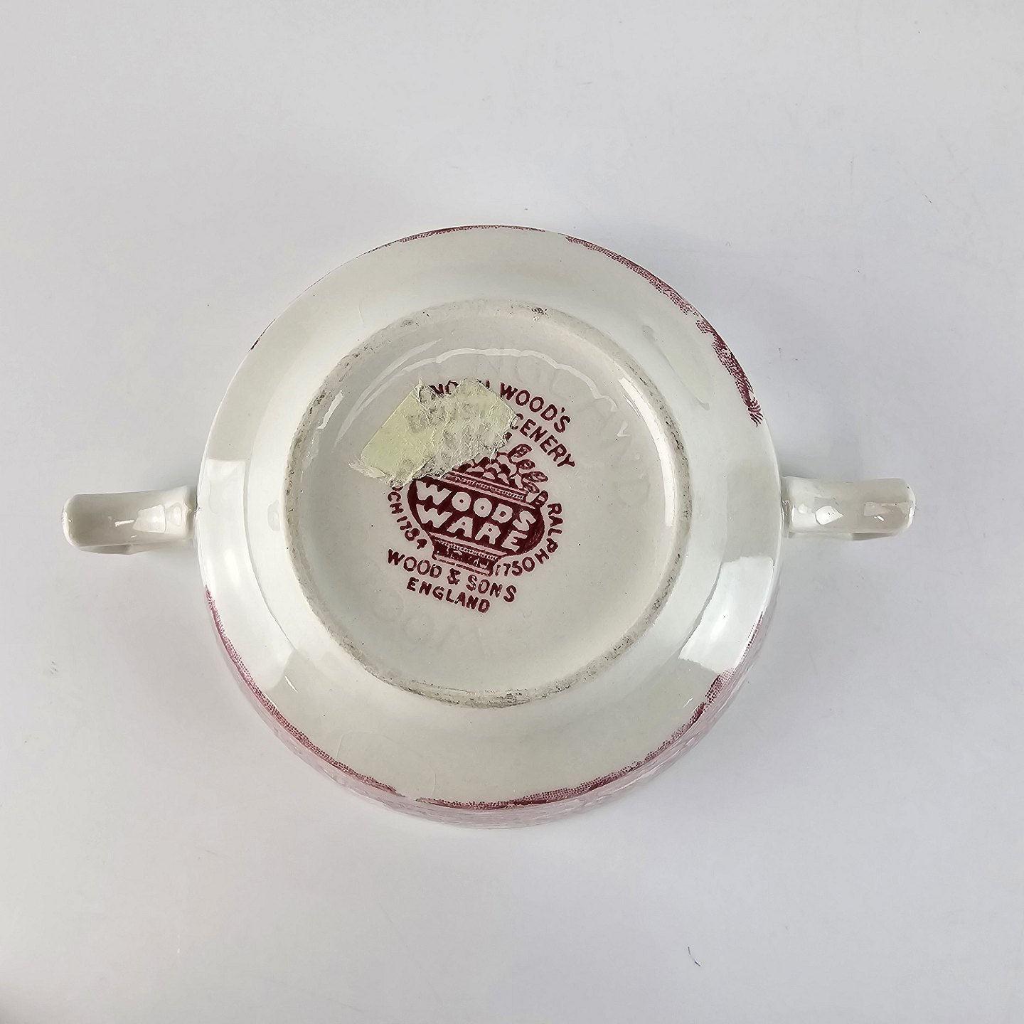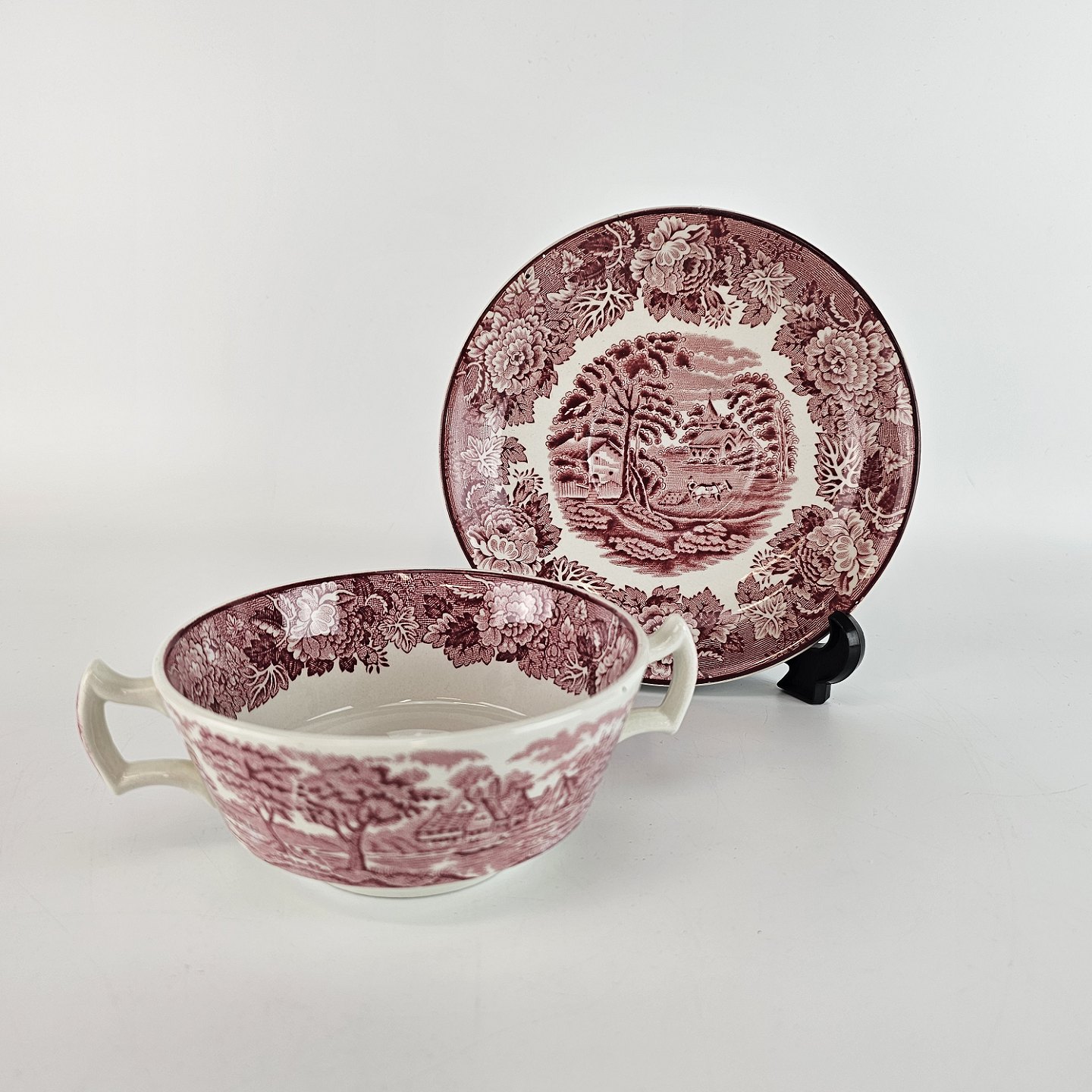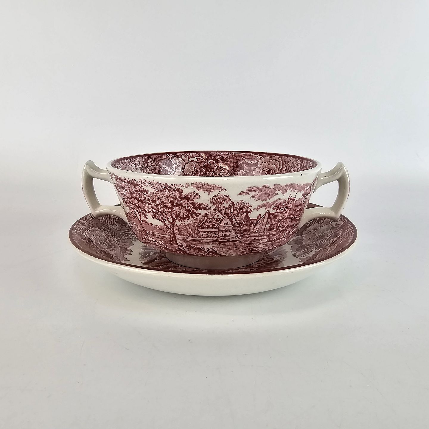 Bouillon kop med kantet øre fra det engelske stel Rød Paris (Enoch wood's, English scenery)