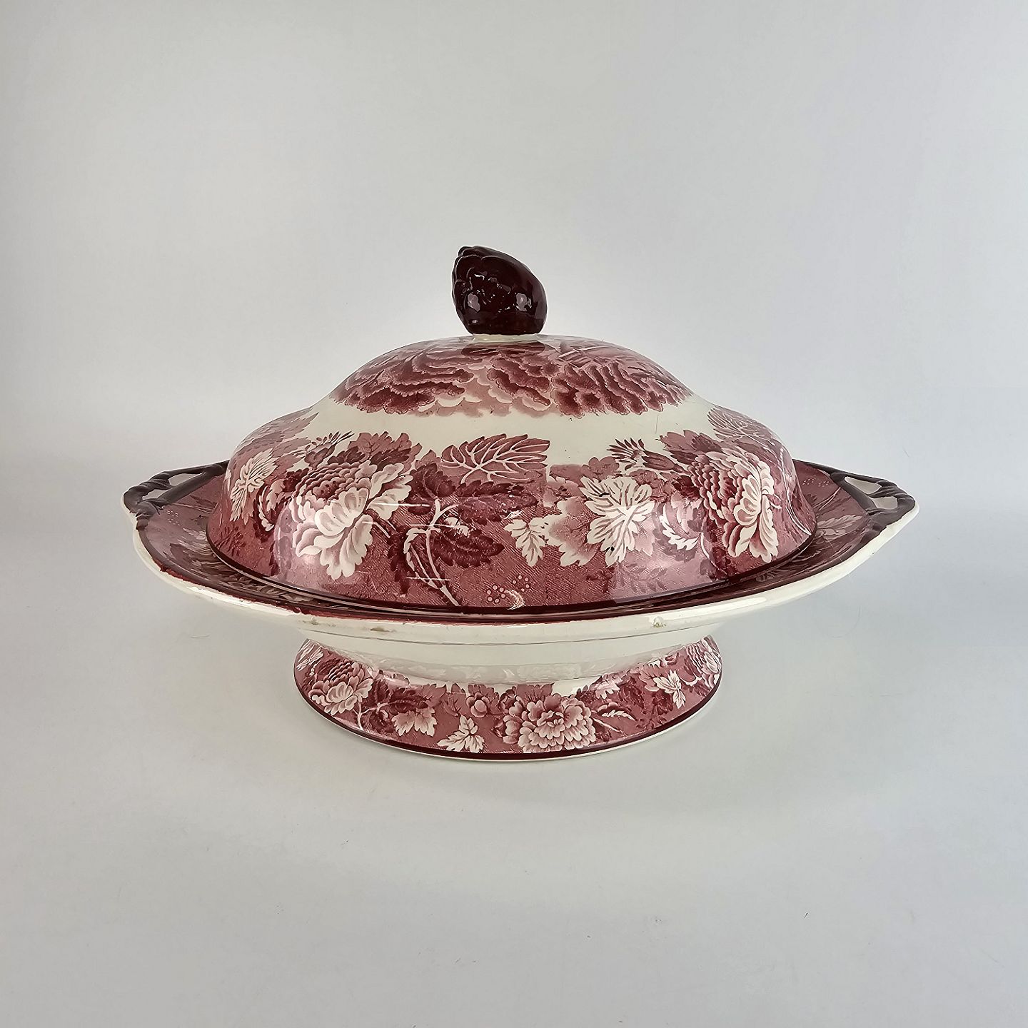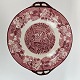 Rød Paris er af engelsk fajance dekoreret med forskellige landskaber og blomster i kanten, alt i forskellige røde nuancer