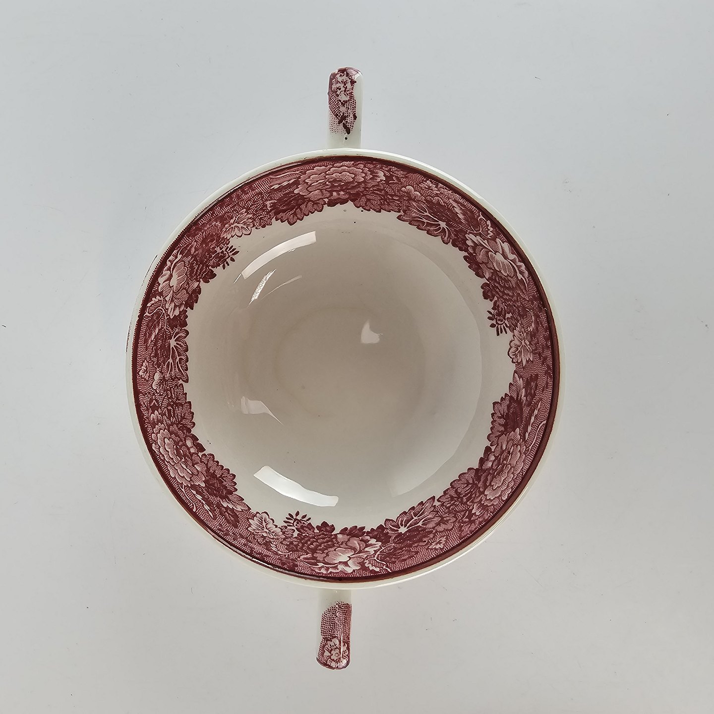 Bouillon kop med spidse øre fra det engelske stel Rød Paris (Enoch wood's, English scenery)