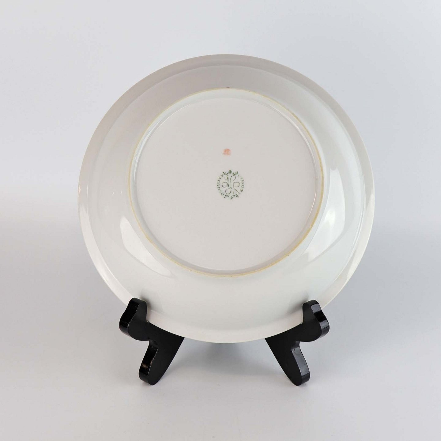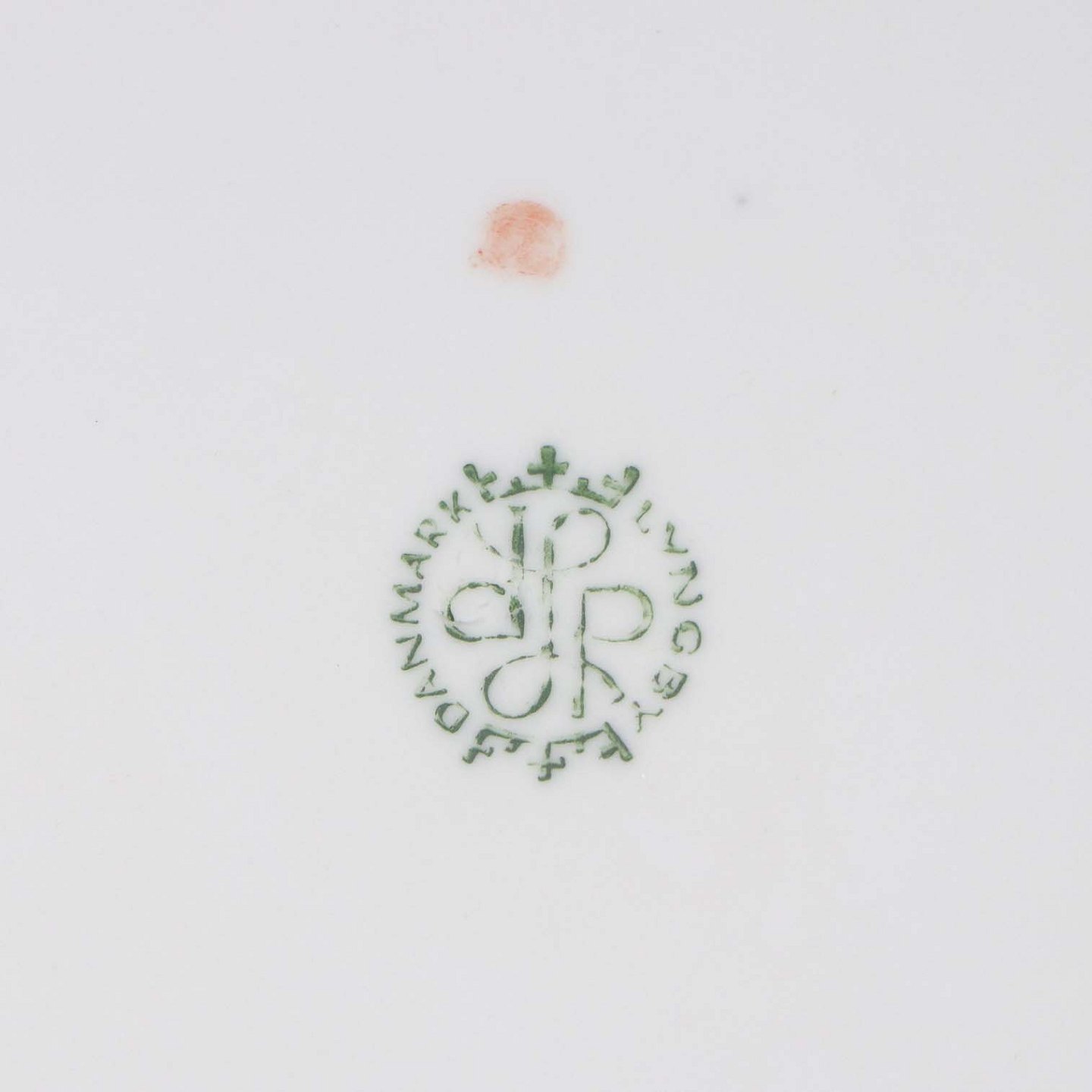 Service i glat hvidt porcelæn, som er påført en cirkel af lotusblade. Stellet er produceret i flere farver