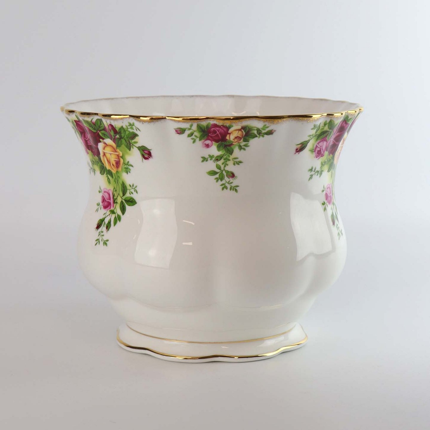 Urtepotteskjuler i porcelæn fra det engelske stel Old country roses. Landsbyrose