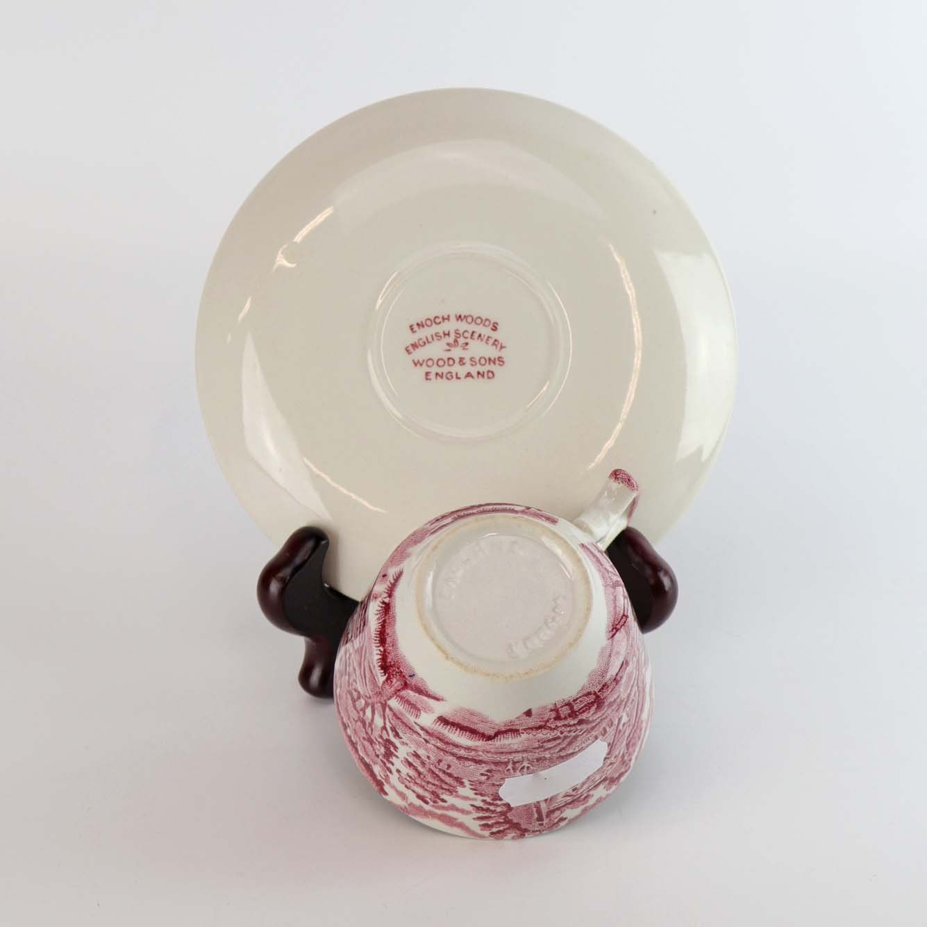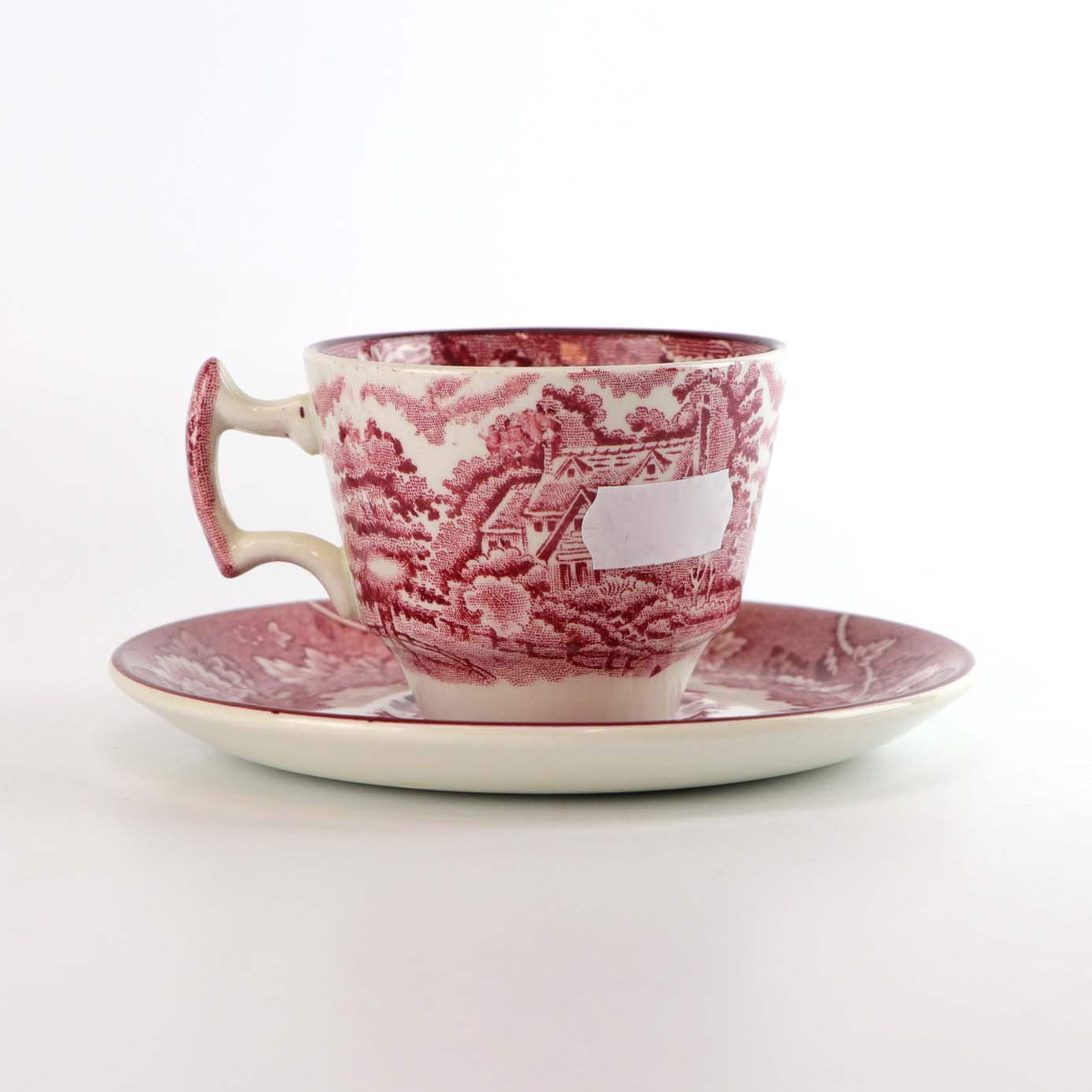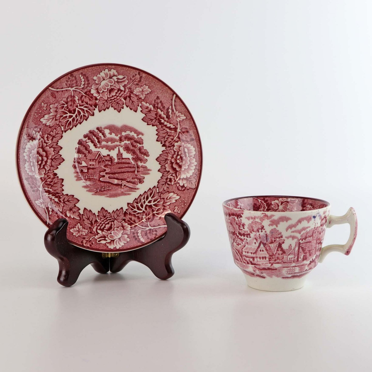 Moccakop med underkop fra det engelske stel Rød Paris (Enoch wood's, English scenery)