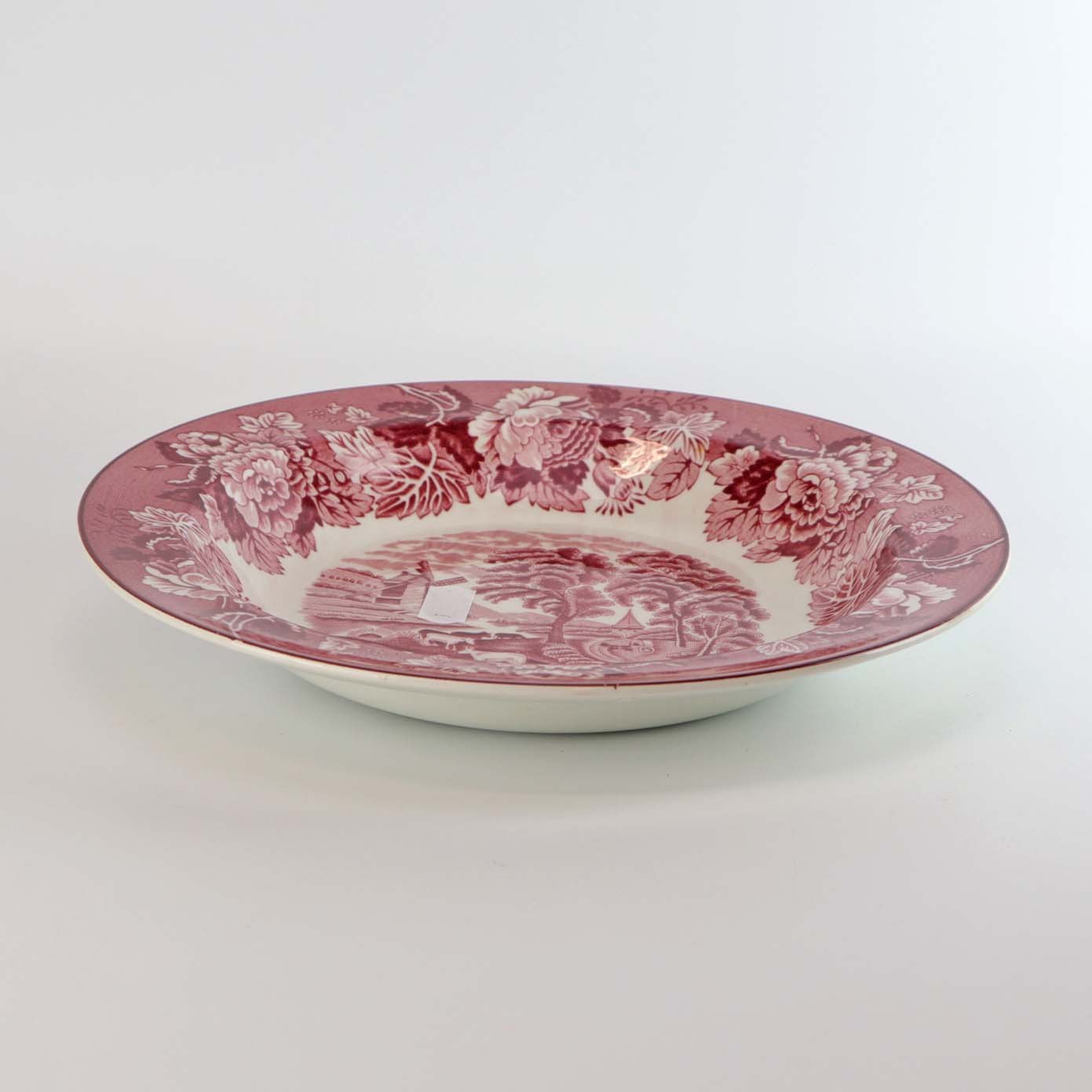 Dyb tallerken med bred kant fra det engelske stel Rød Paris (Enoch wood's, English scenery)