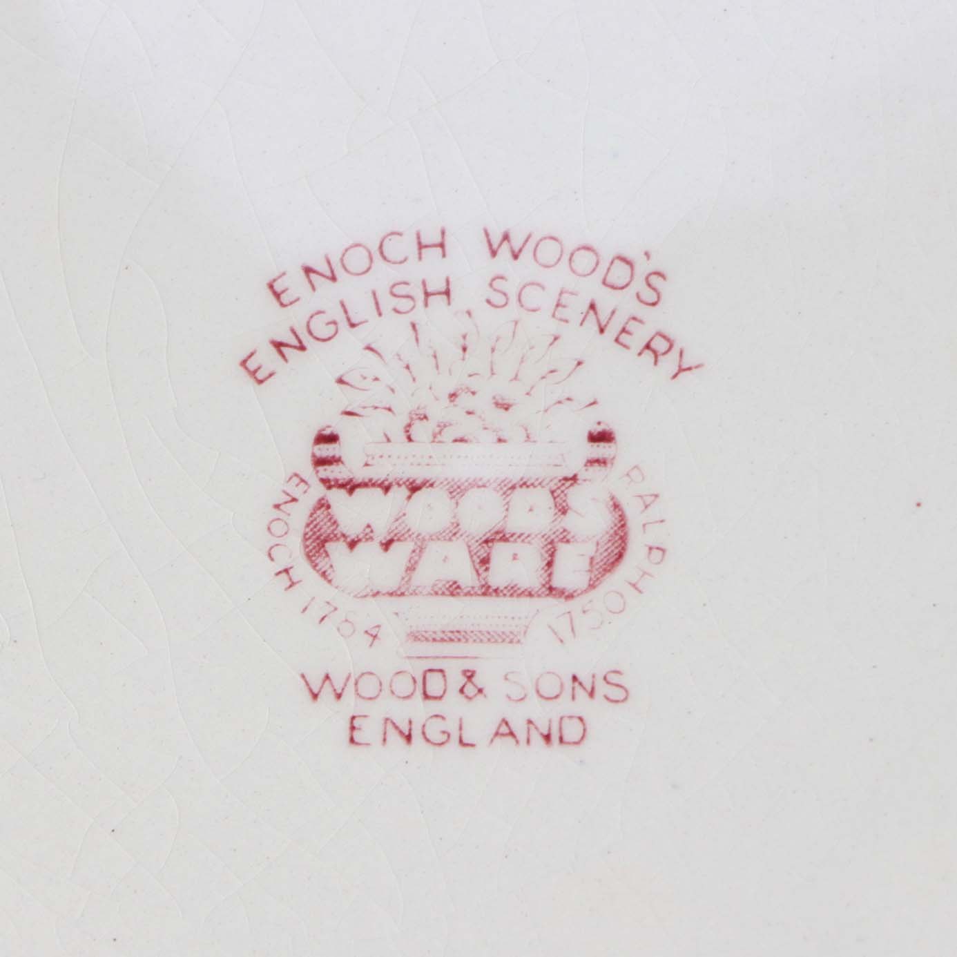 Frokosttallerken fra det engelske stel Rød Paris (Enoch wood's, English scenery)