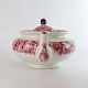 Rød Paris er af engelsk fajance dekoreret med forskellige landskaber og blomster i kanten, alt i forskellige røde nuancer