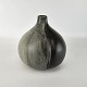 Rund vase i keramik med tilspidset hals i dæmpede lyse, gråblå og sorte