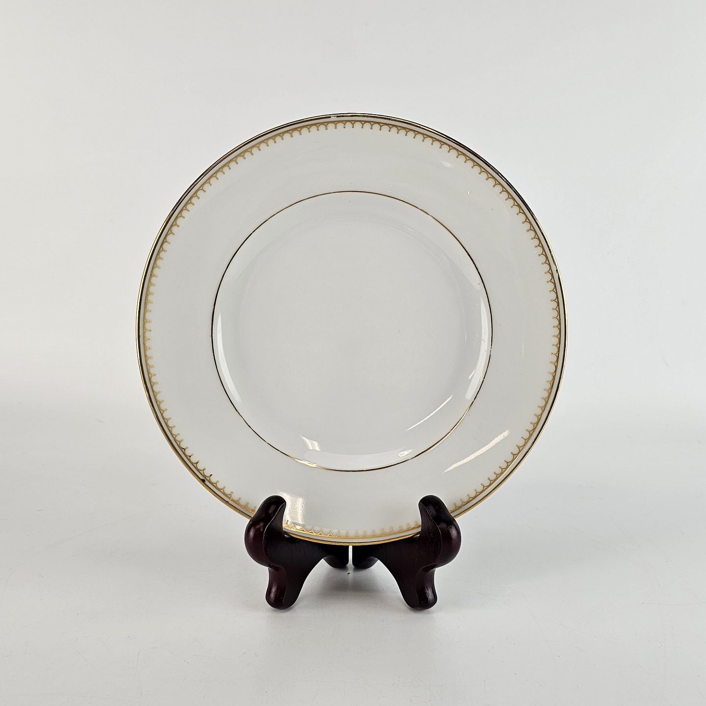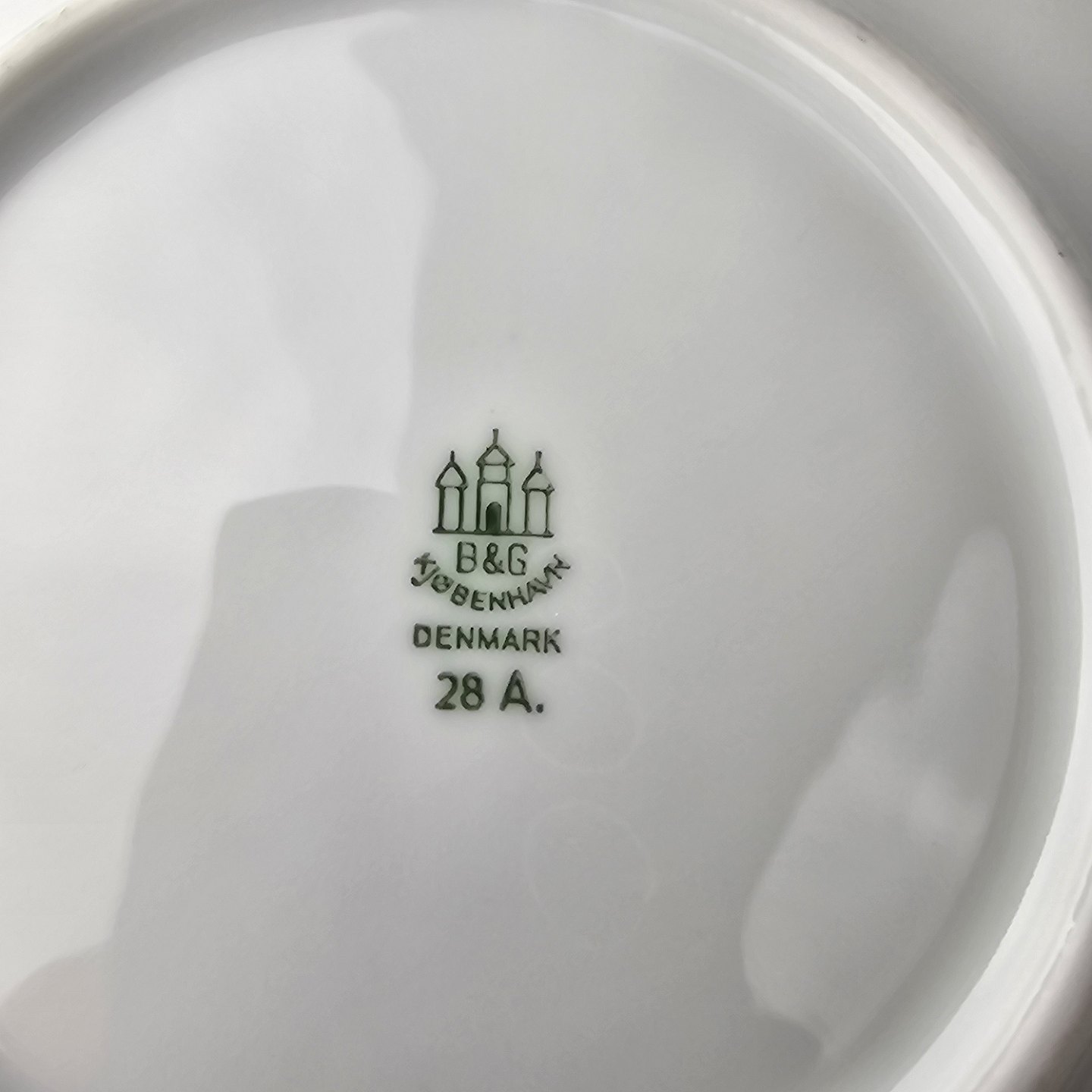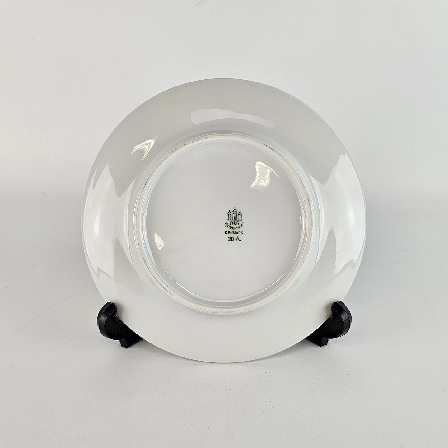 Menuet er hvidt glaseret porcelæn dekoreret med guld i kanten. Lettere brugsspor kan forekomme.
