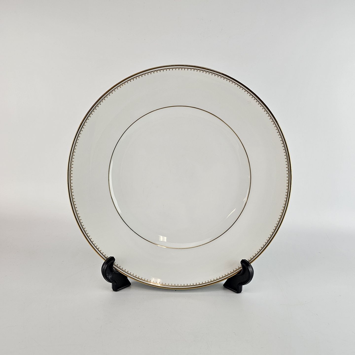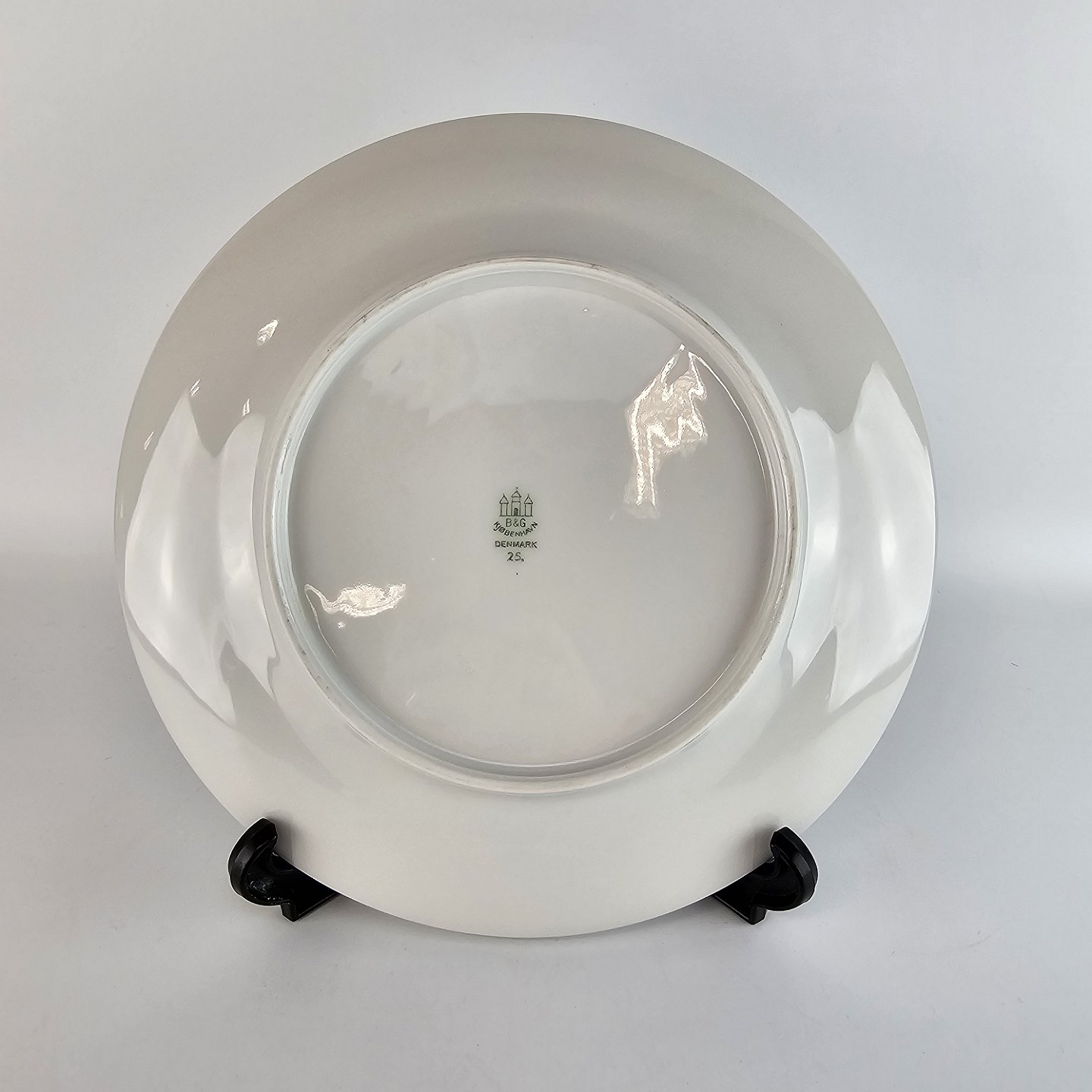 Menuet er hvidt glaseret porcelæn dekoreret med guld i kanten. Lettere brugsspor kan forekomme.