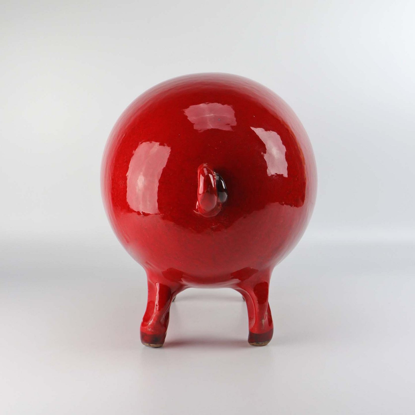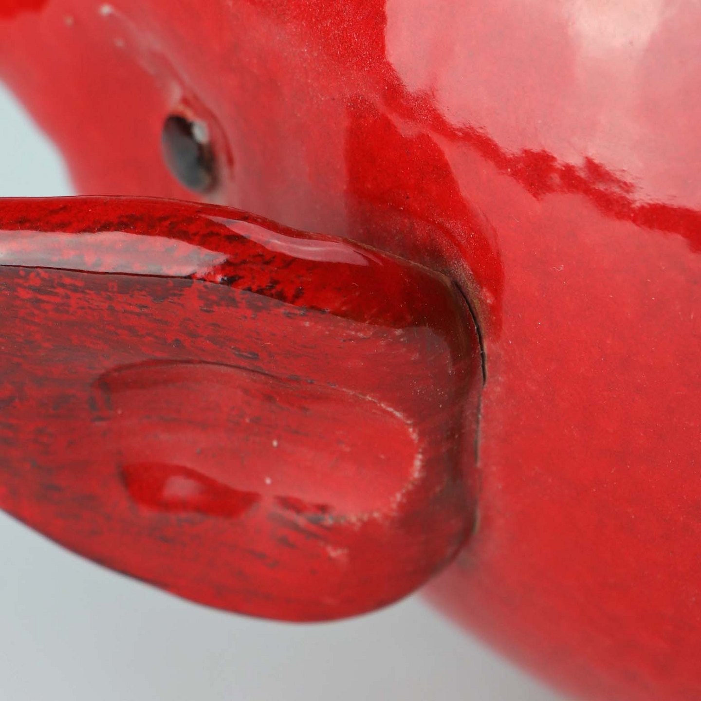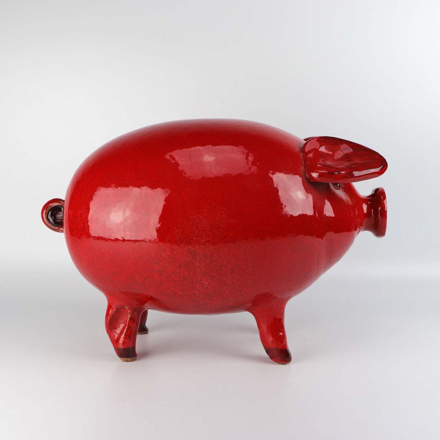 Stor sparegris i rødglaseret keramik og aftagelig bundprop i plast