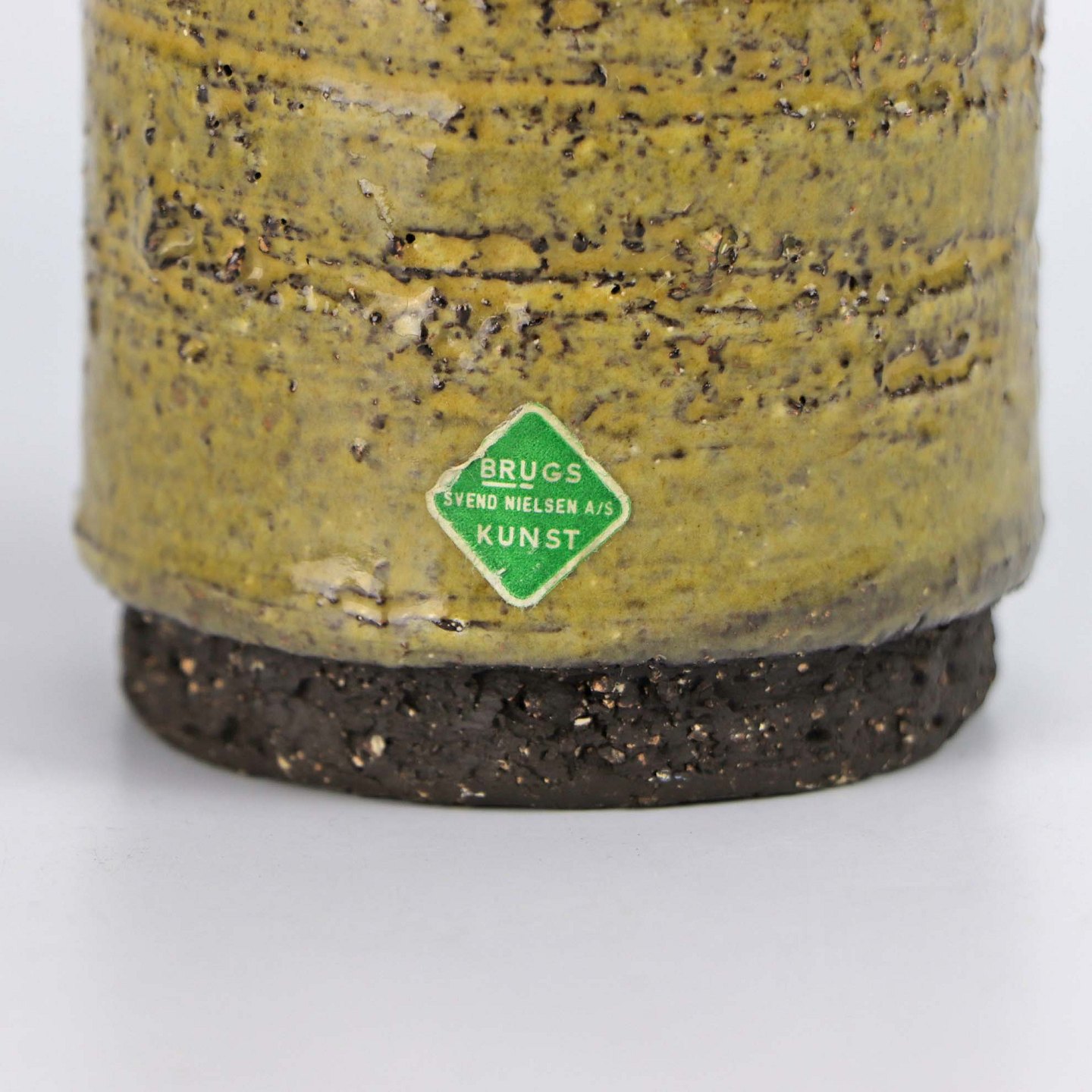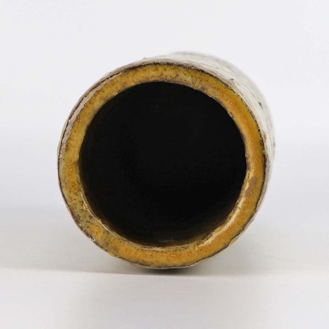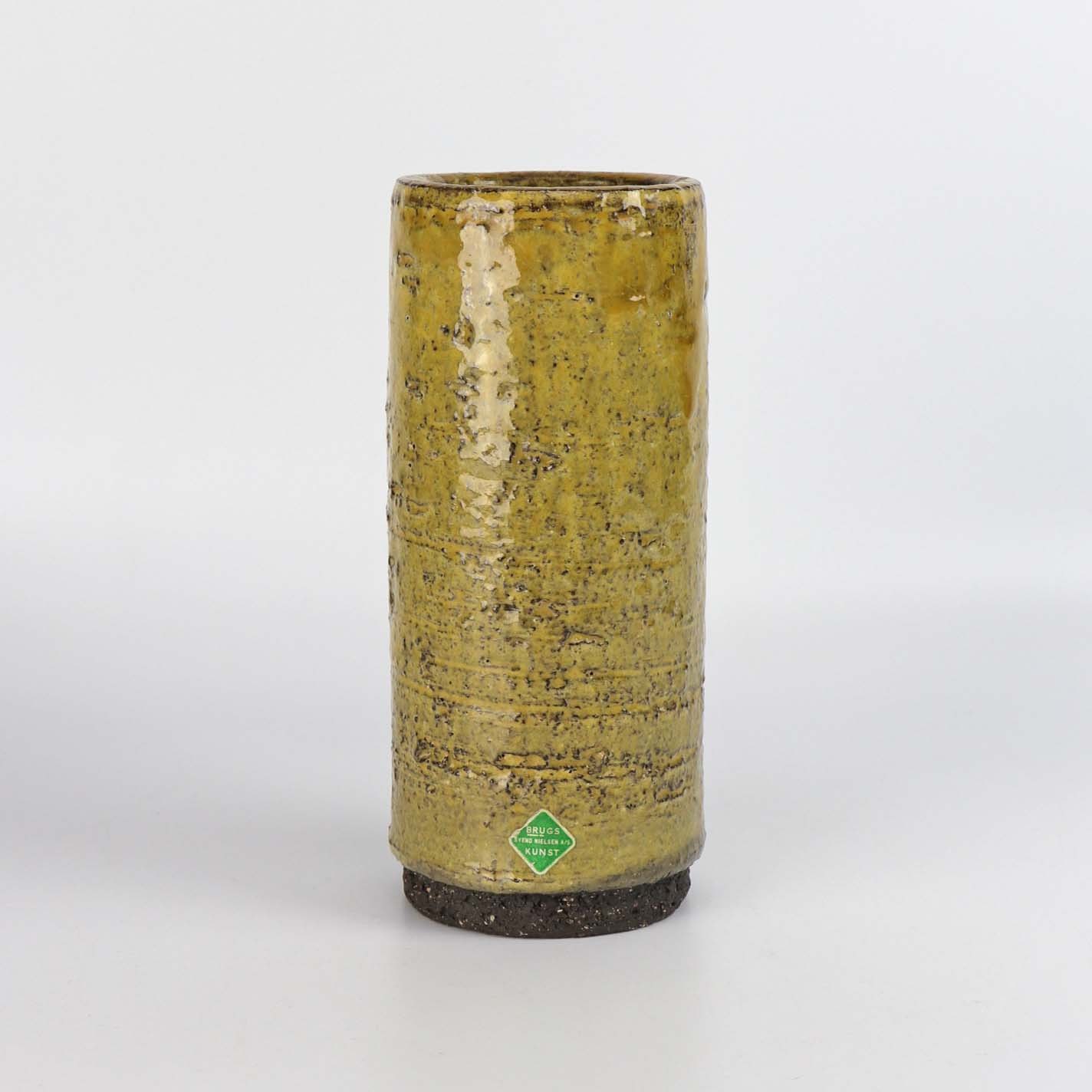 Dansk cylinderformet vase i gul glaseret struktureret stentøj