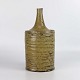 Vase i brunt struktureret stentøj med slank hals og nister. Vasen har en assymmetrisk åbning